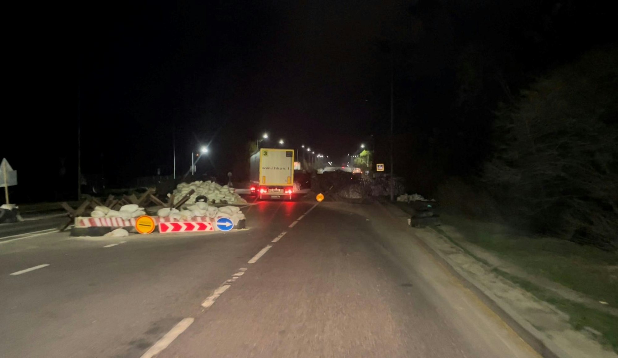 Checkpoint am Stadtrand von Lviv: Der Hilfskonvoi aus Bergisch Gladbach und Overath darf trotz nächtlicher Ausgangssperre passieren.