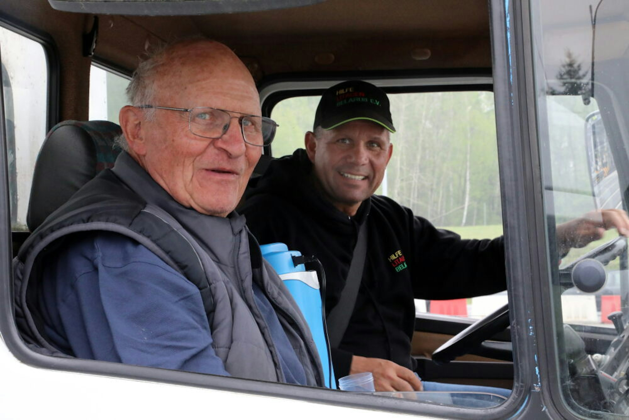 Am Steuer: Die Konvoi-Organisatoren Norbert Kuhl und Uli Gürster (v.l.)