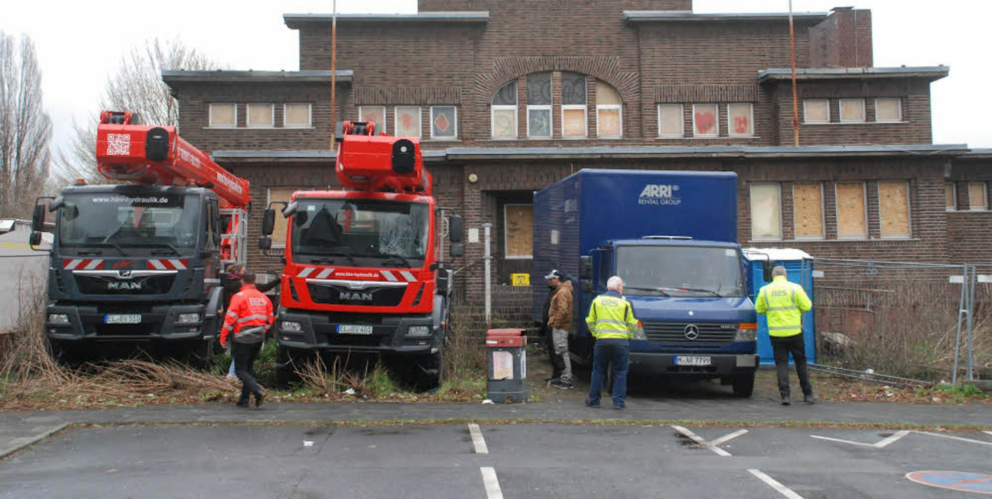 Doch immerhin sehen Filmproduzenten in dem maroden Gebäude mit seinen zugenagelten Fenstern und dem verwilderten Umfeld eine filmreife Kulisse. Zunächst drei Tage lang werden dort Szenen für die neue Netflix-Serie „Die Welle“ gedreht.