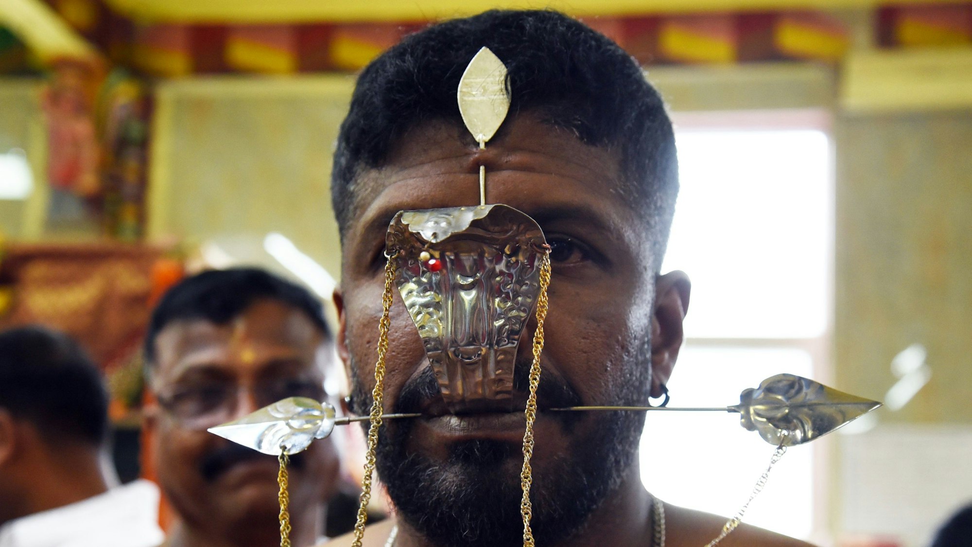 Bei der Zeremonie im Tempel wurden auch heilige Haken durch die Haut getrieben.