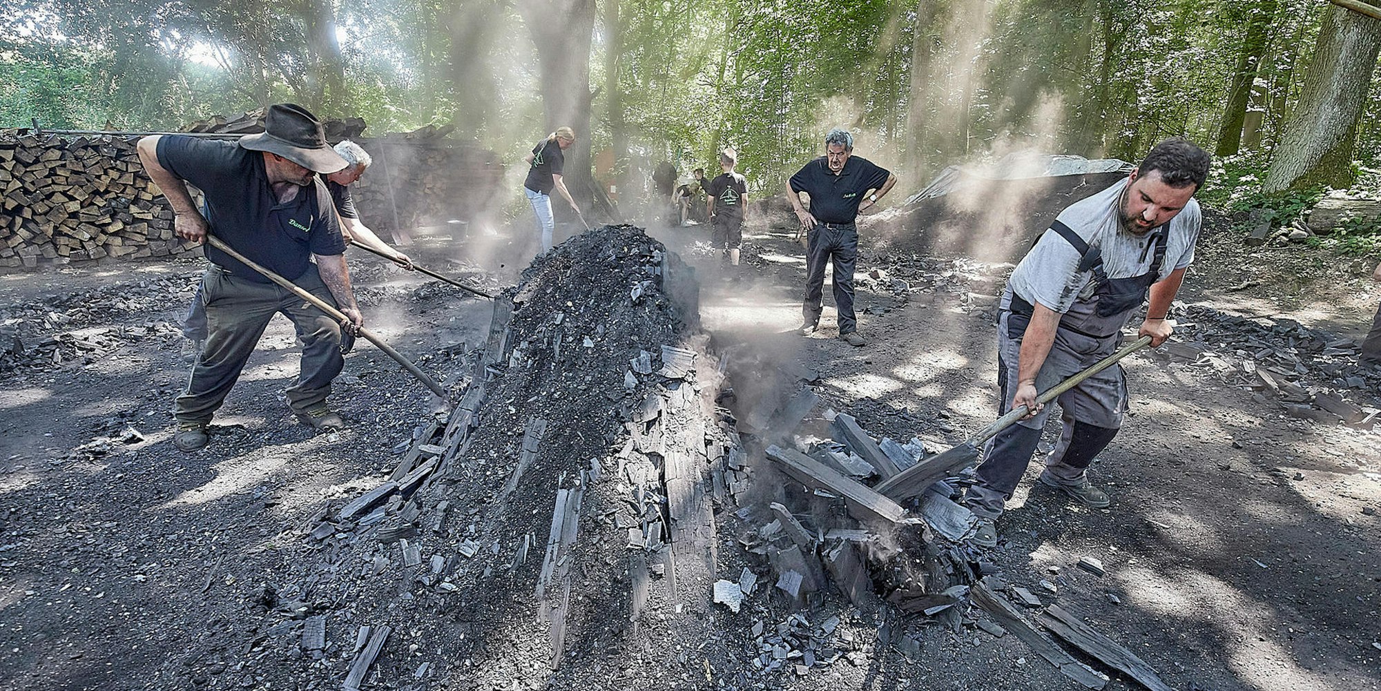 „Tag der schwarzen Männer“In Düttling wurden 4,5 Tonnen Holzkohle geerntet