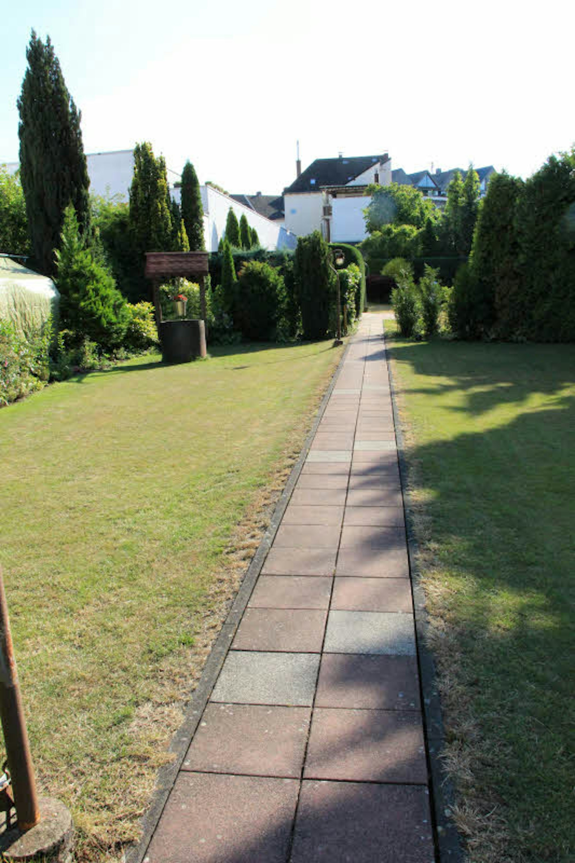 Lange Gartenwege verbinden einzelne Häuser miteinander. In den seitlichen Büschen befinden sich Ruhezonen für zahlreiche Tiere.