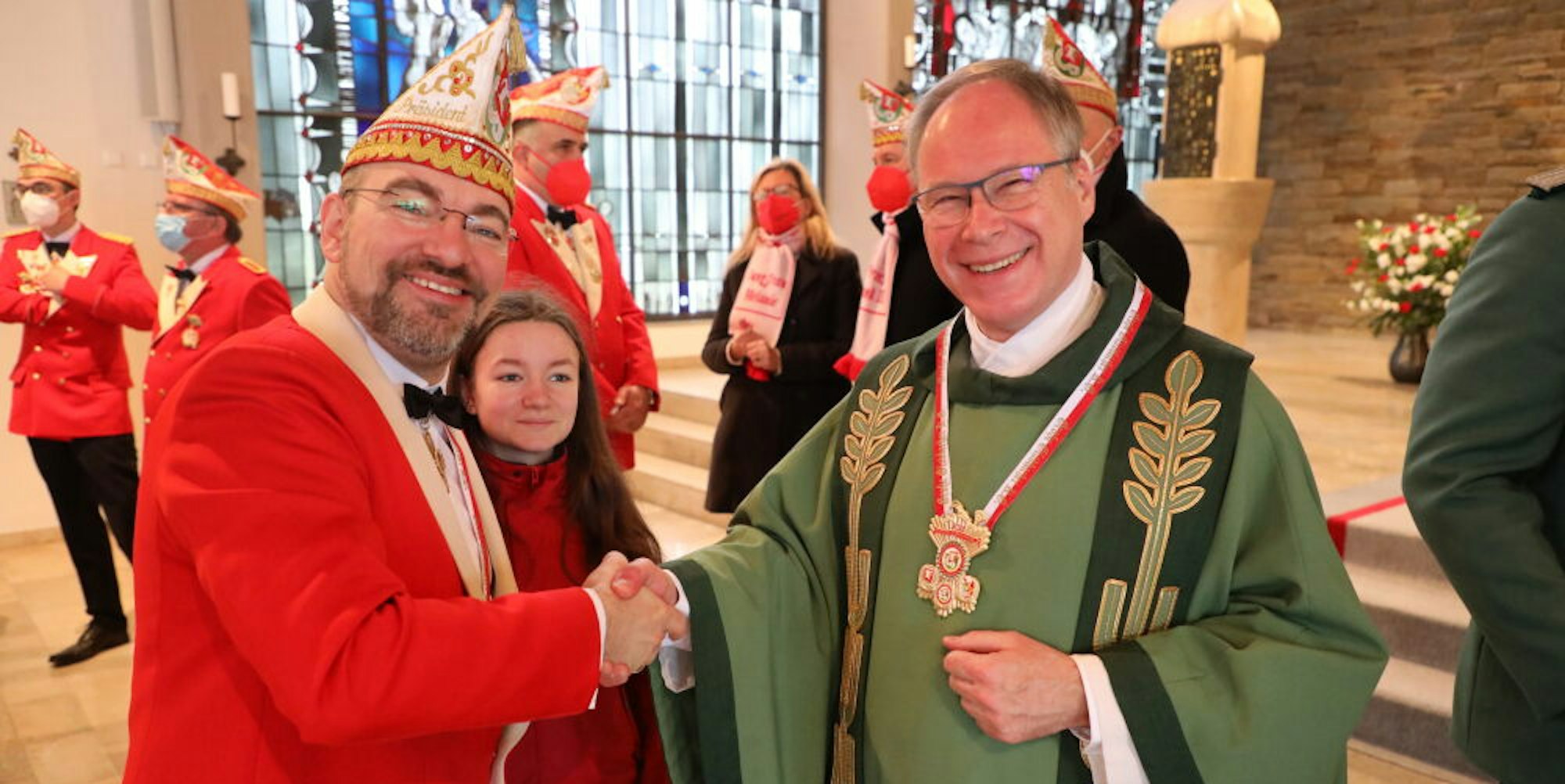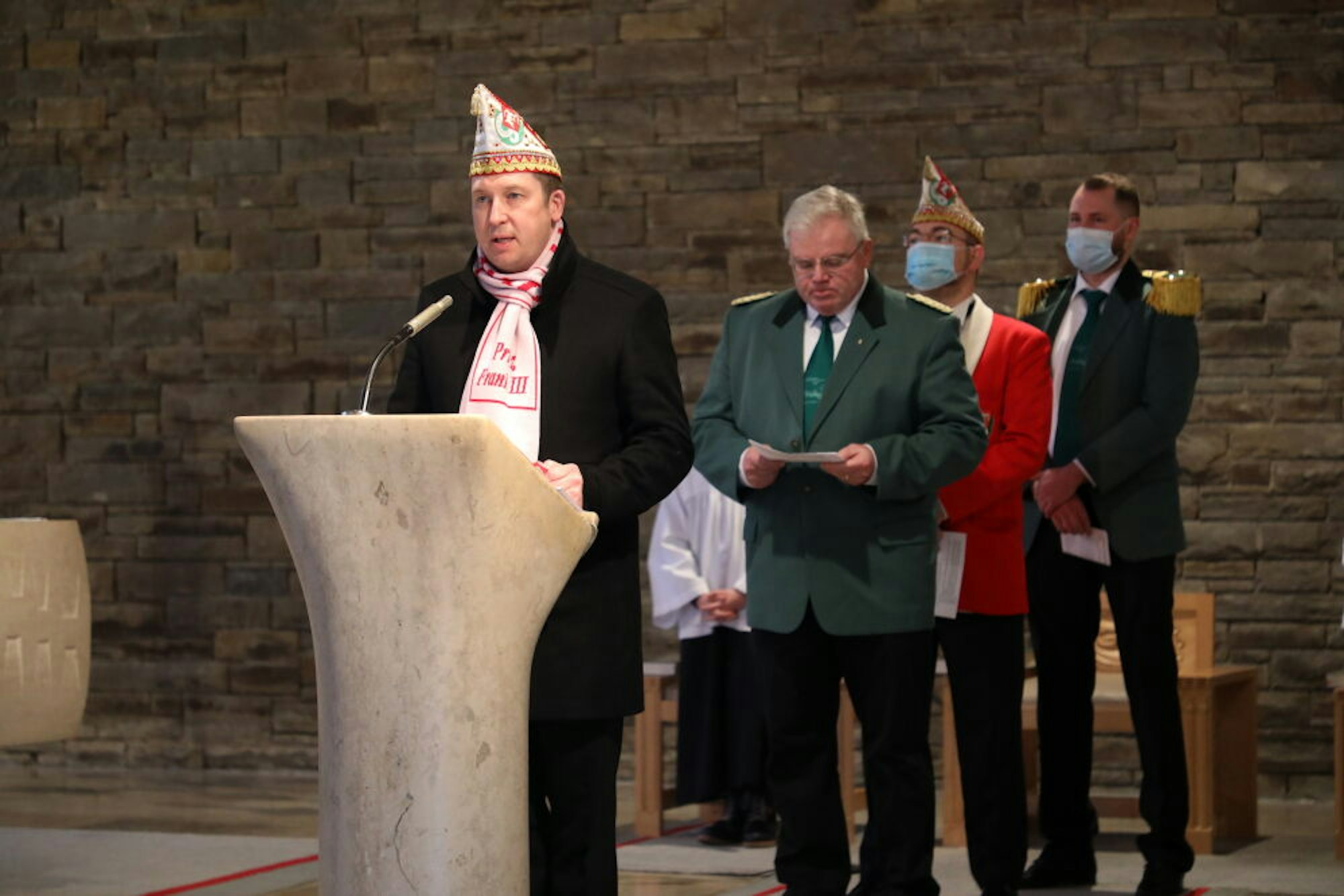 Zuvor hatten Schützen und Karnevalisten gemeinsam den Gottesdienst mitgestaltet, hatte Knoob ebenso wie Klaus-Dieter Becker im grünen Rock eine Fürbitte vorgetragen, wie sich auch Pfister und der designierte Karnevalsprinz Frank III. (Haag) in die Sprecher am Ambo der St. Konrad-Kirche einreihten.