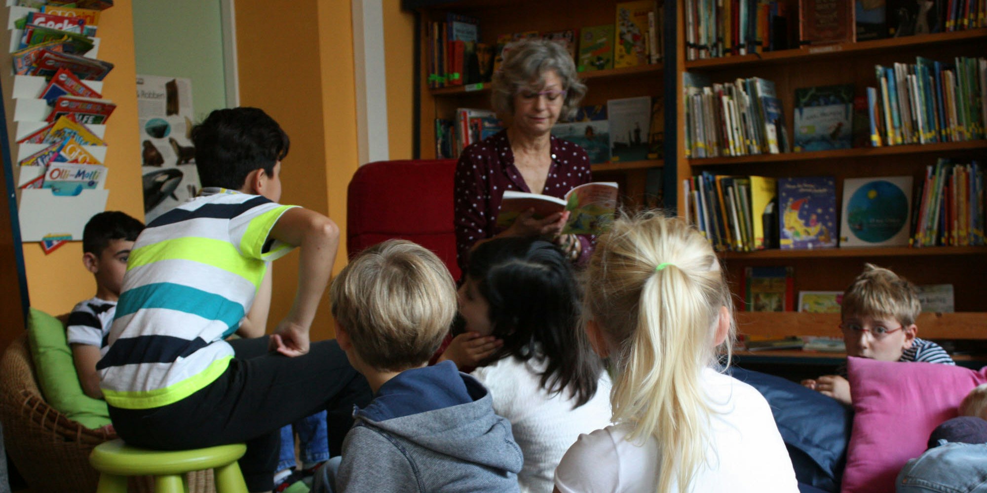 Gemütliche Lesestunde in der neuen Bibliothek