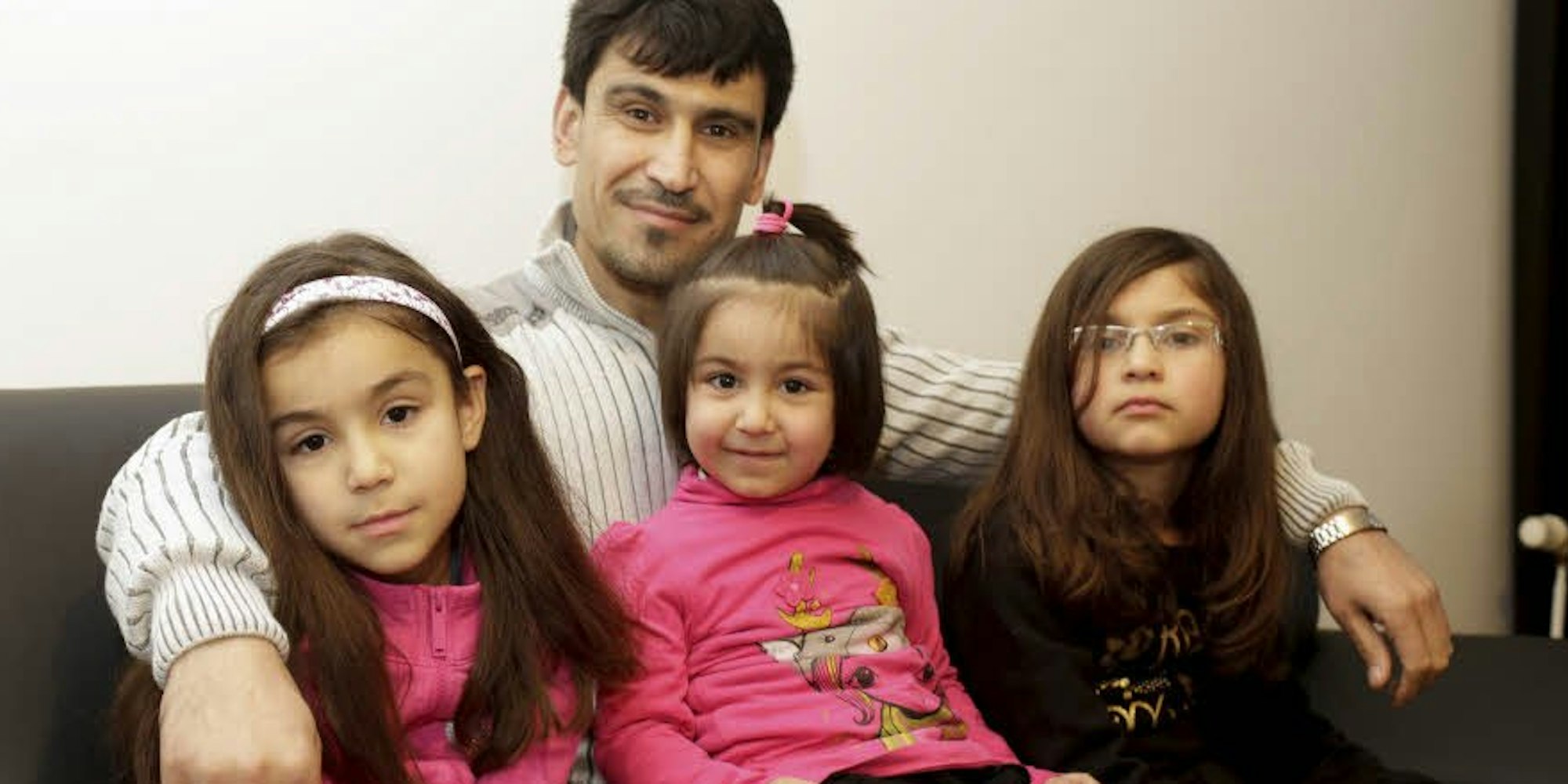 Mohammad Daoud Maqsudi mit den Töchtern Arya,Ghezal und Donya, (v.l.) in seiner Wohnung in Weiden.