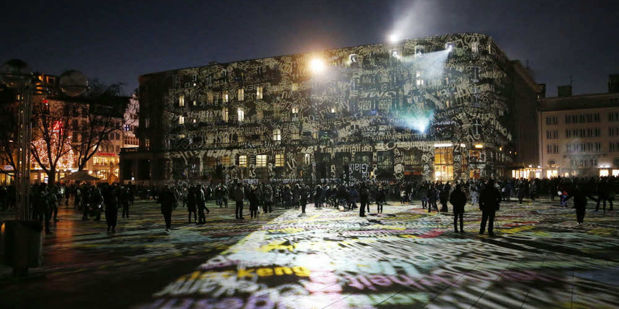 Rund um den Dom wurden in der Silvesternacht Lichtprojektionen gezeigt. Sie sollten an die Ereignisse des Vorjahres erinnern.
