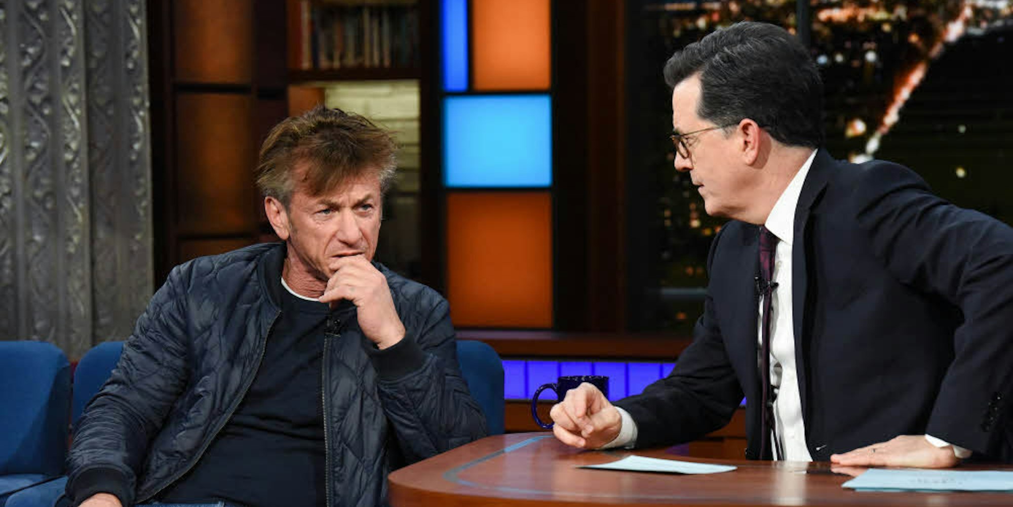 Schauspieler Sean Penn (l.) mit Talkmaster Stephen Colbert.