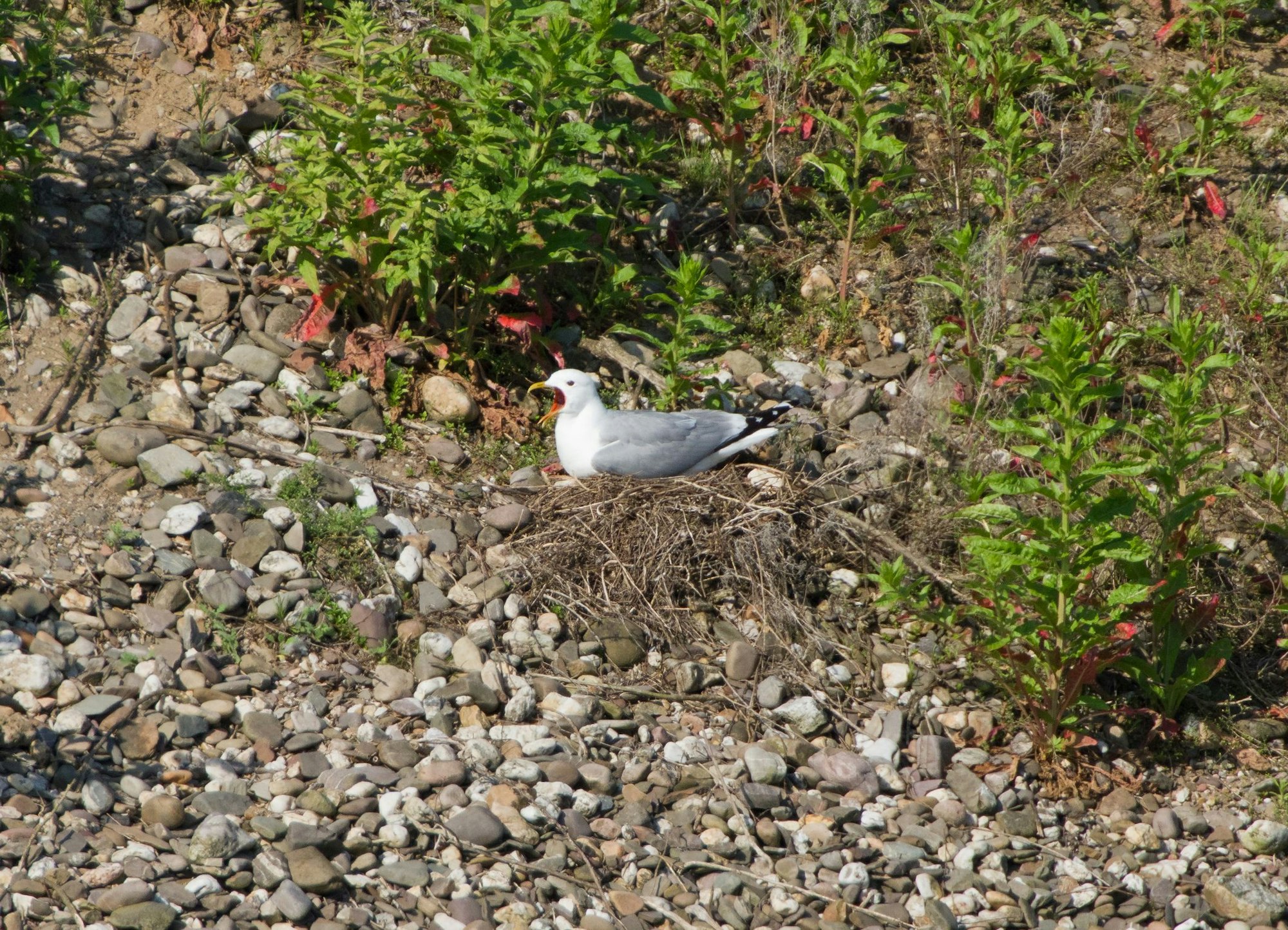 Eine Sturmmöwe bei der Brut am Buschbergsee