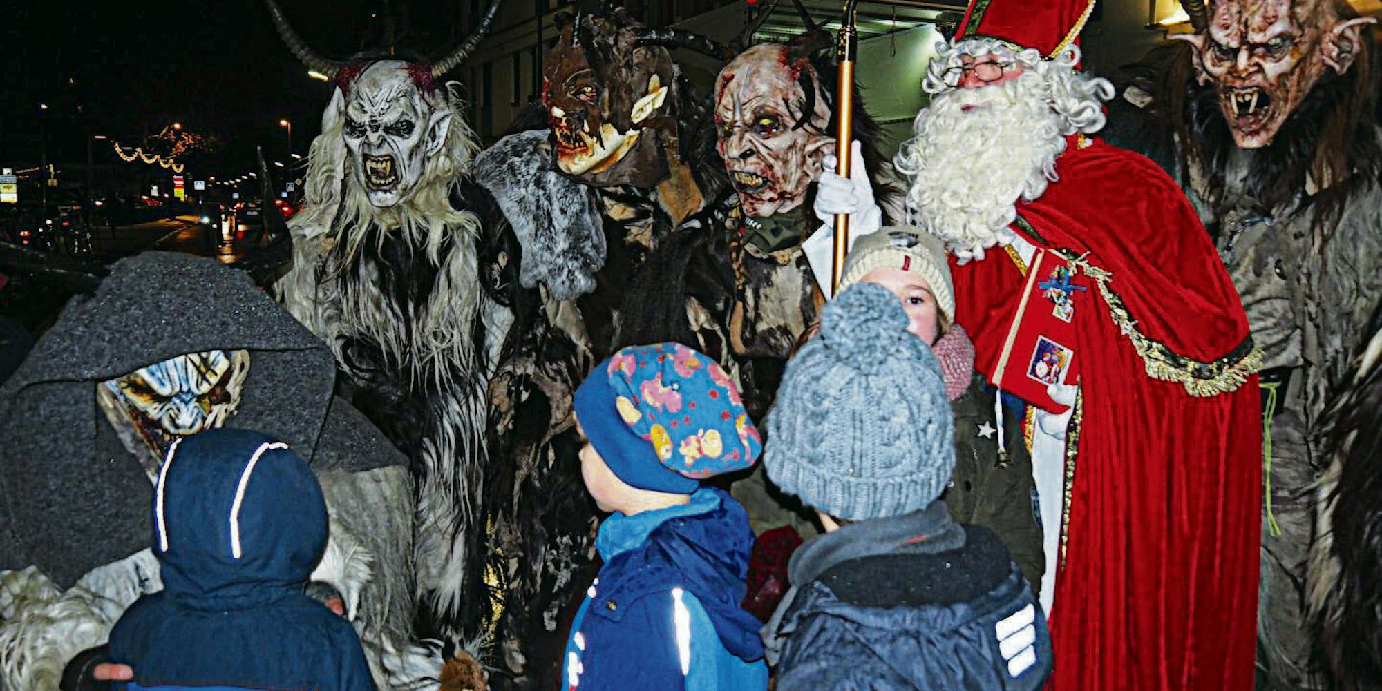 Die Perchten beschützen den Nikolaus. Ob die Kinder das auch so sehen?