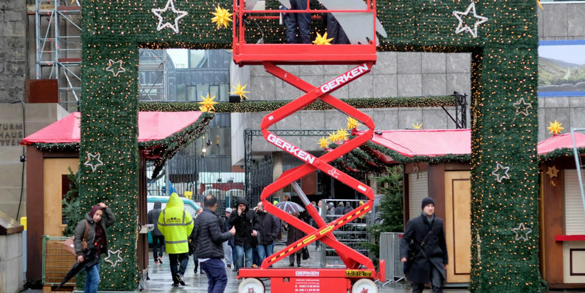 Advent Aufbauarbeiten auf dem Roncalliplatz.