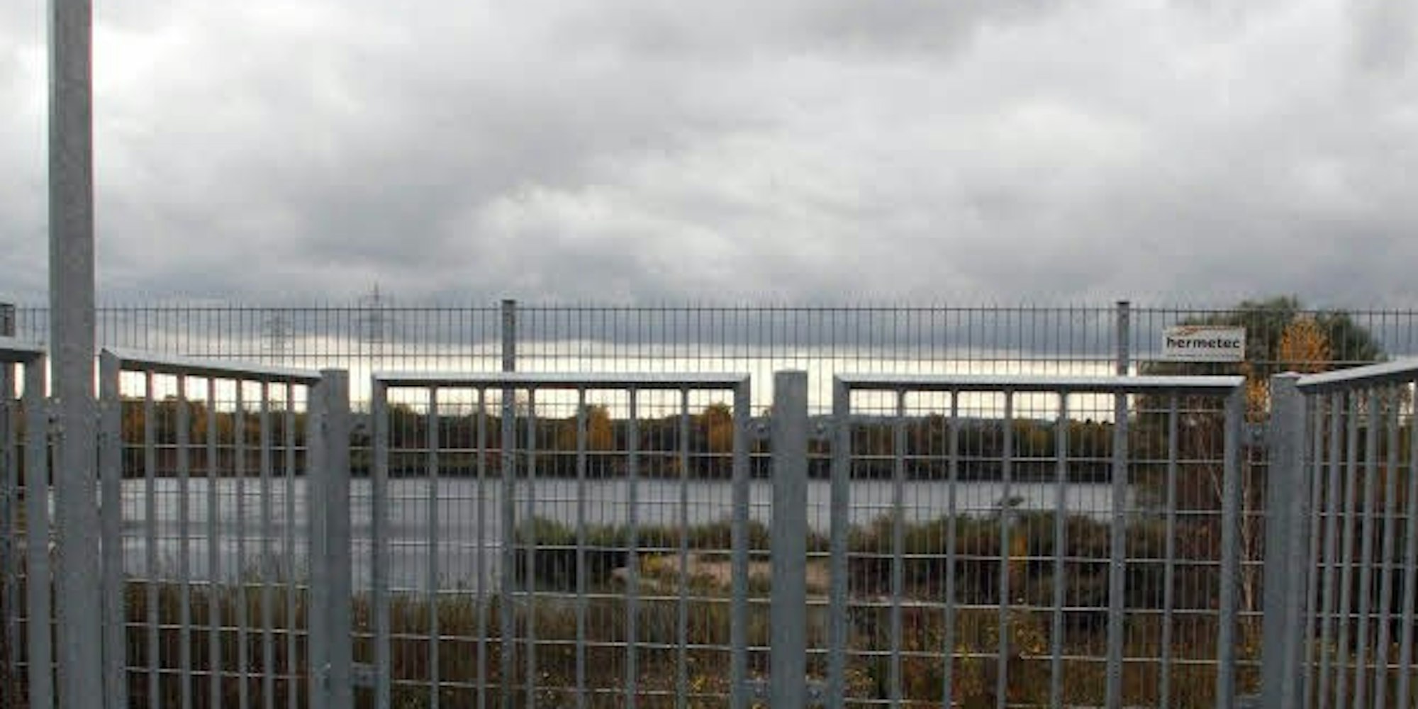 Freier Blick auf einen Metallzaun: Die Plattform am Escher See.