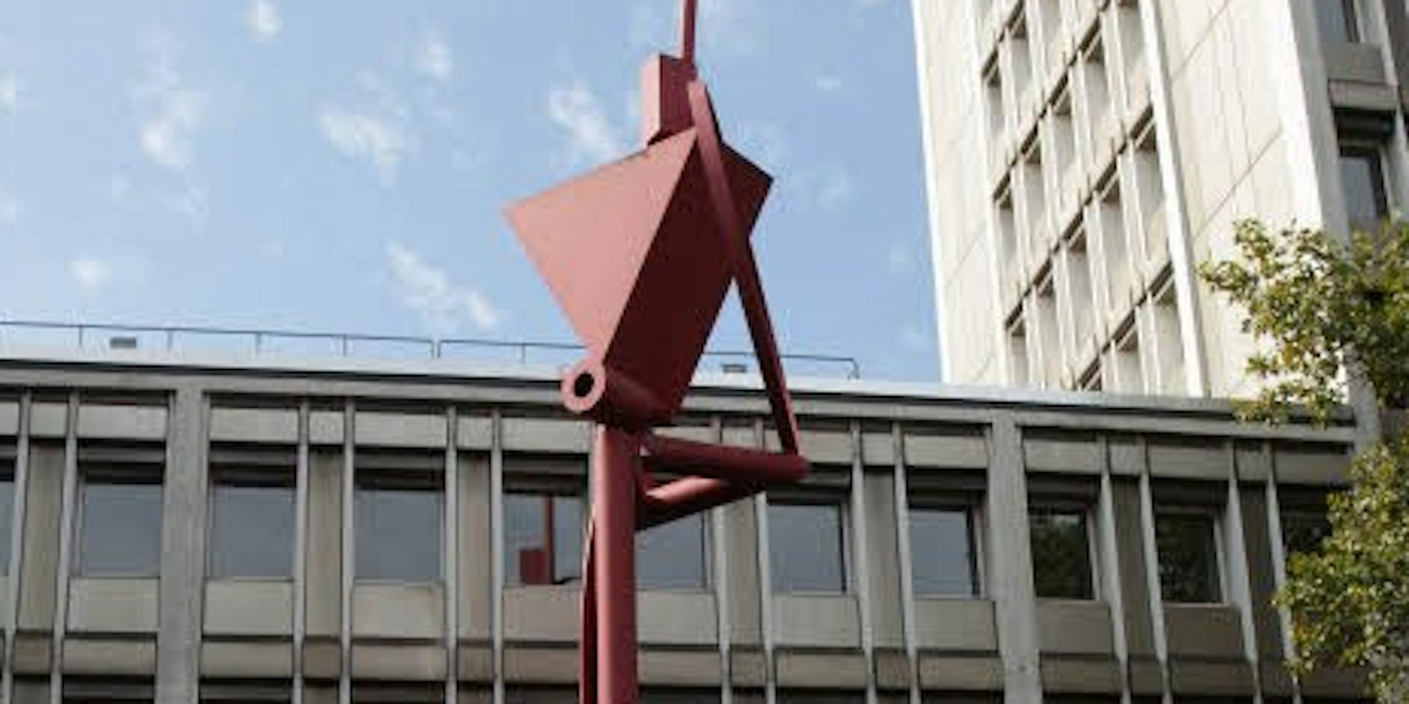 Köln – Die rot gefasste Skulptur ist über und über mit Aufklebern verunstaltet, mit Graffiti besprüht, mit tiefen Kratzern durchzogen – sie ist bis in die unter der Farbfassung liegende Metallschicht beschädigt. Das war der Zustand des 21 Meter hohen Stahlkunstwerks auf dem Barbarossaplatz, bevor Verena Panter und Kaska Kmiotek-Nogalski mit der Restaurierung begonnen haben. Nach rund 100 Stunden Arbeit sind die Fortschritte deutlich zu erkennen, die Aufkleber sind fast vollständig verschwunden, erste schadhafte Stellen ausgebessert.
