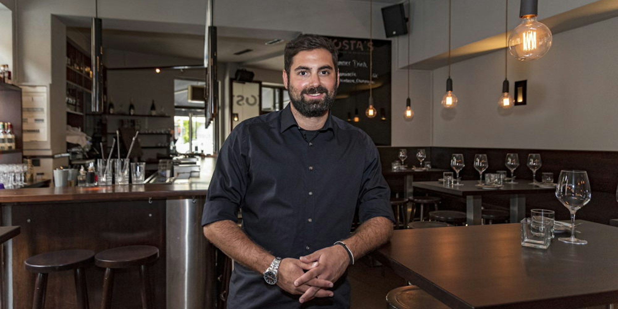 Vor ein paar Wochen hat der Gastronom zusätzlich sowohl die Räumlichkeiten des ehemaligen „Pepe“ an der Antwerpener Straße als auch einen Teil des alten Teams übernommen. Seit kurzem gibt es nun im Belgischen Viertel ein zweites „Kosta’s“, das nicht mehr so klassisch griechisch daherkommt. Bei der Einrichtung hat David komplett auf griechisches Dekor verzichtet. Das Interieur wirkt recht modern, elegant und schnörkellos.