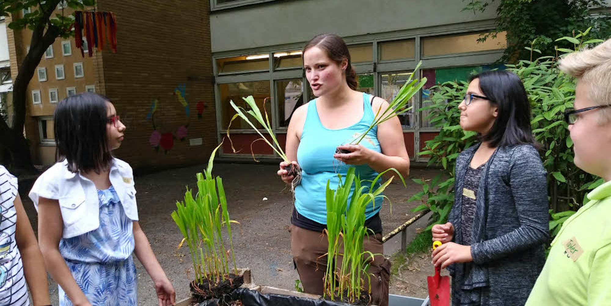 Unterstützt werden die Jugendlichen von den Ackerhelfern. Das sind Studenten wie Susanne, die ehrenamtlich bei der Bepflanzung und Betreuung mithelfen. „Ich studiere zwar Nachhaltige Landwirtschaft, aber selbst da haben viele keine Ahnung von den verschiedenen Pflanzen, das finde ich echt erschreckend“, erzählt sie. „Die Kinder lernen hier den bewussten Umgang mit Lebensmitteln, woher sie kommen und wie sie aussehen. Sie sind richtig stolz, wenn sie Arten unterscheiden können.“