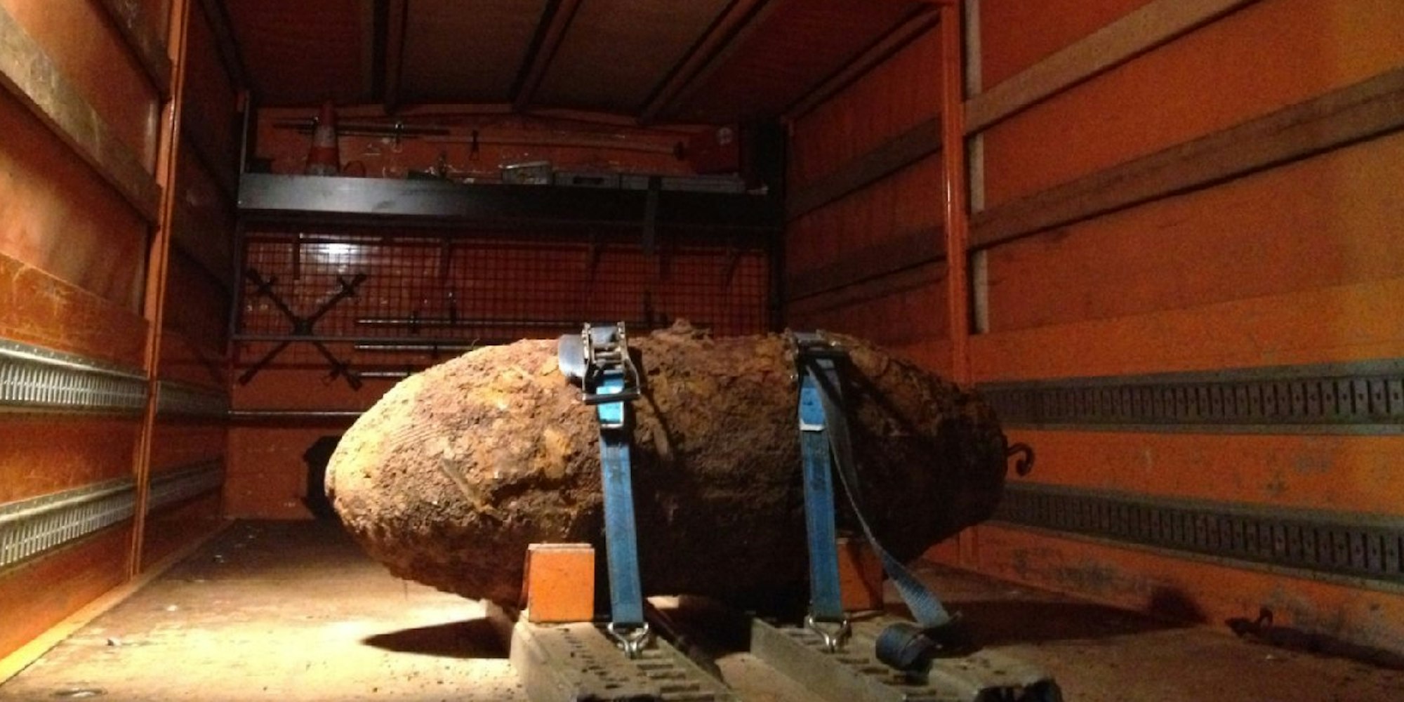 Dafür braucht man gute Nerven: Geborgene Weltkriegsbombe in Lindenthal.