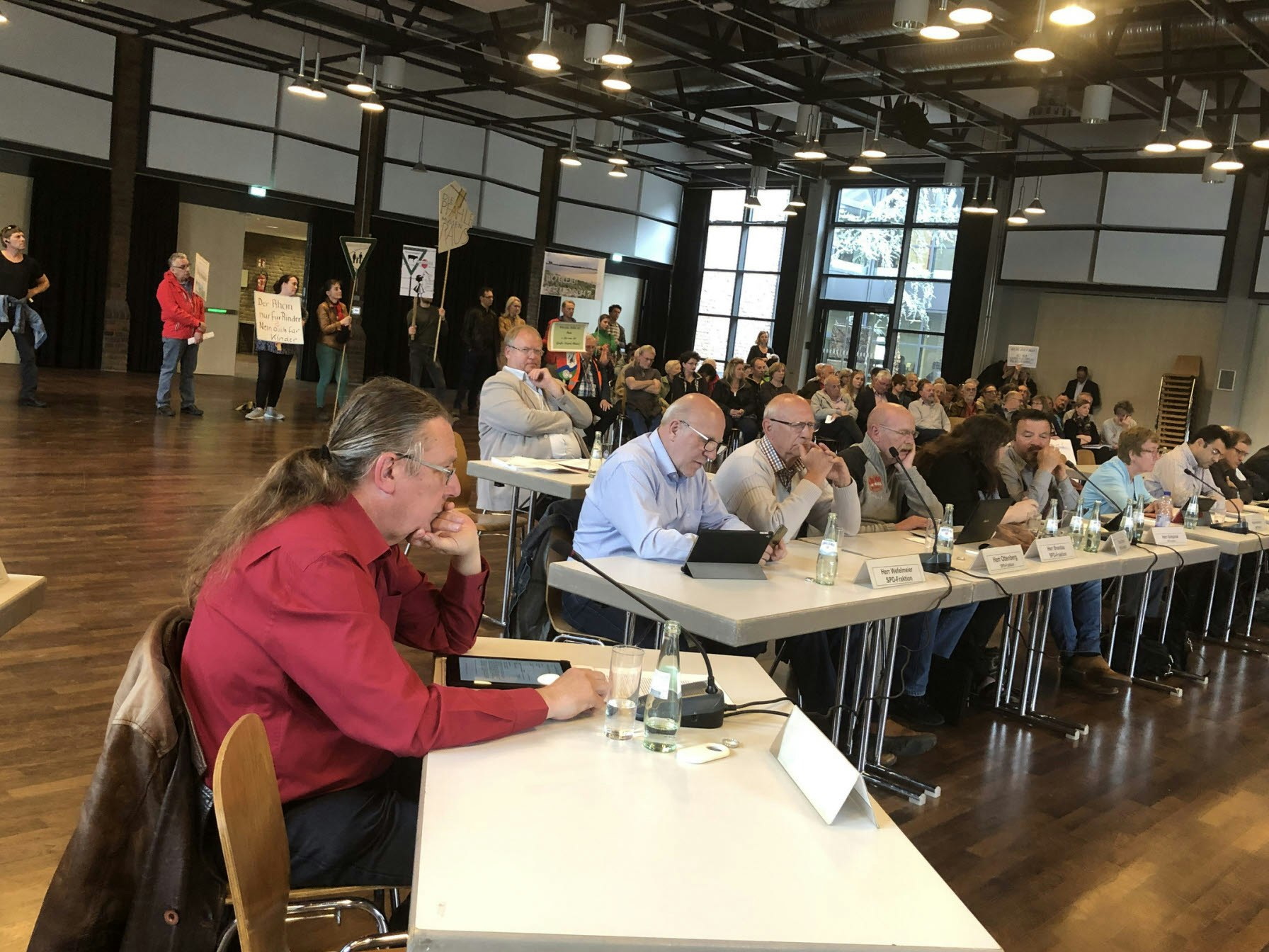 Bei der Sitzungen der Bezirkspolitiker, die über die Rheinaue diskutierten, gingen die Proteste der Anwohner weiter.