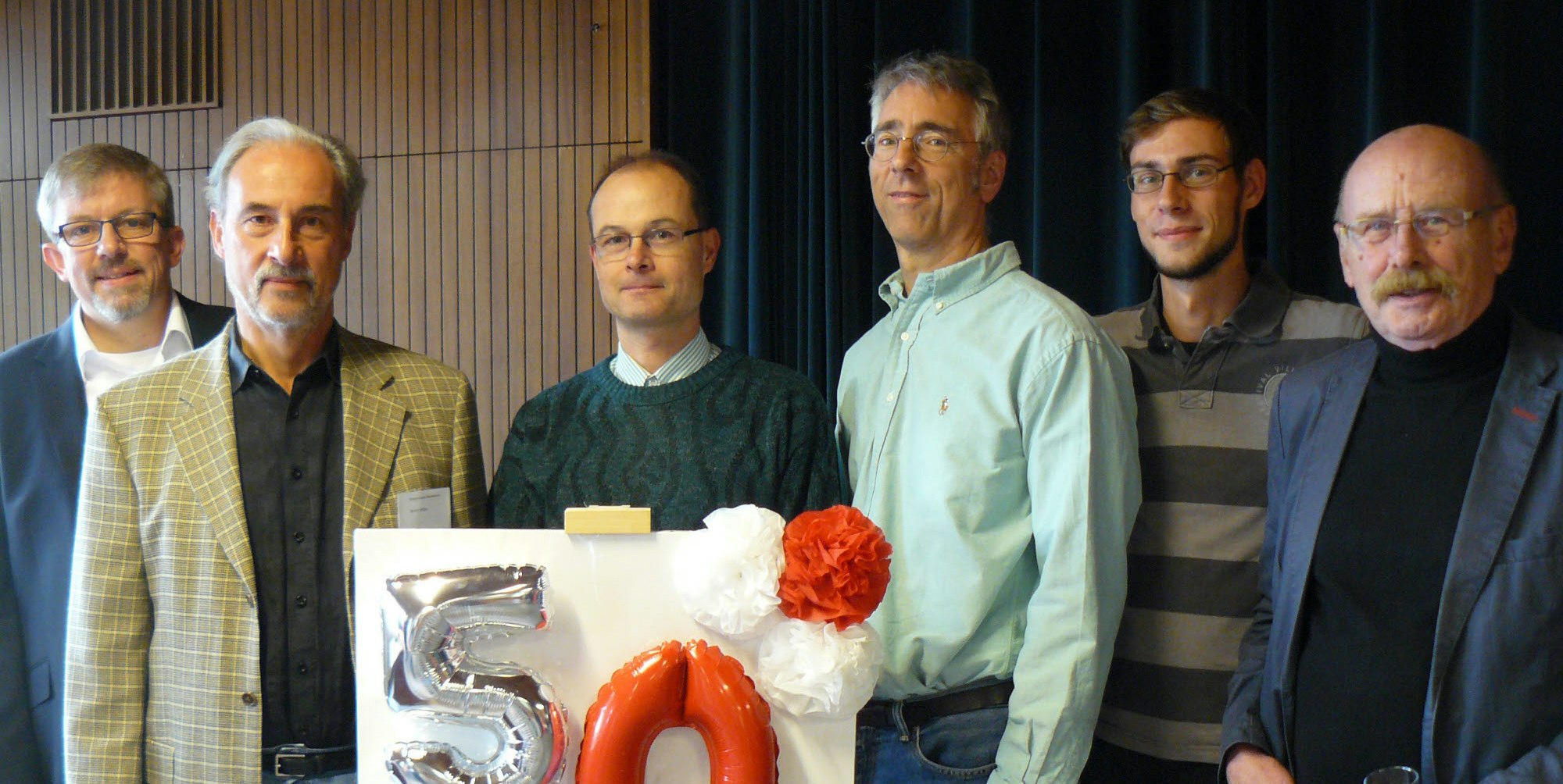 Thomas Schmidt (v.l.), Bruno Klais, Robert Stein, Matthew Corley, Michael Klais und Dieter Brandau vom Vorstand des Vereins