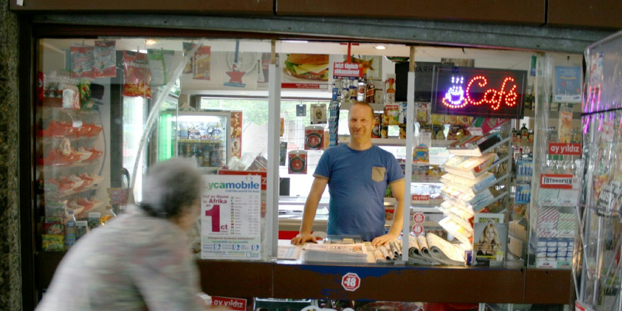Büdchenbetreiber Osman Akpinar hält in seinem Kiosk bis in den späten Abend die Stellung.