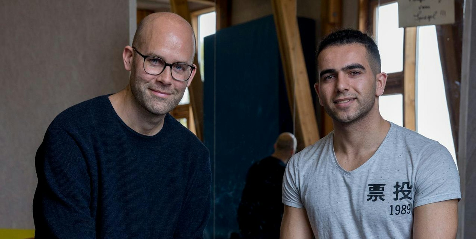 Regisseur Stefan Herrmann und Darsteller Pejman Khaledi Hassanabadi (r.) am Rande der Proben für das Stück.