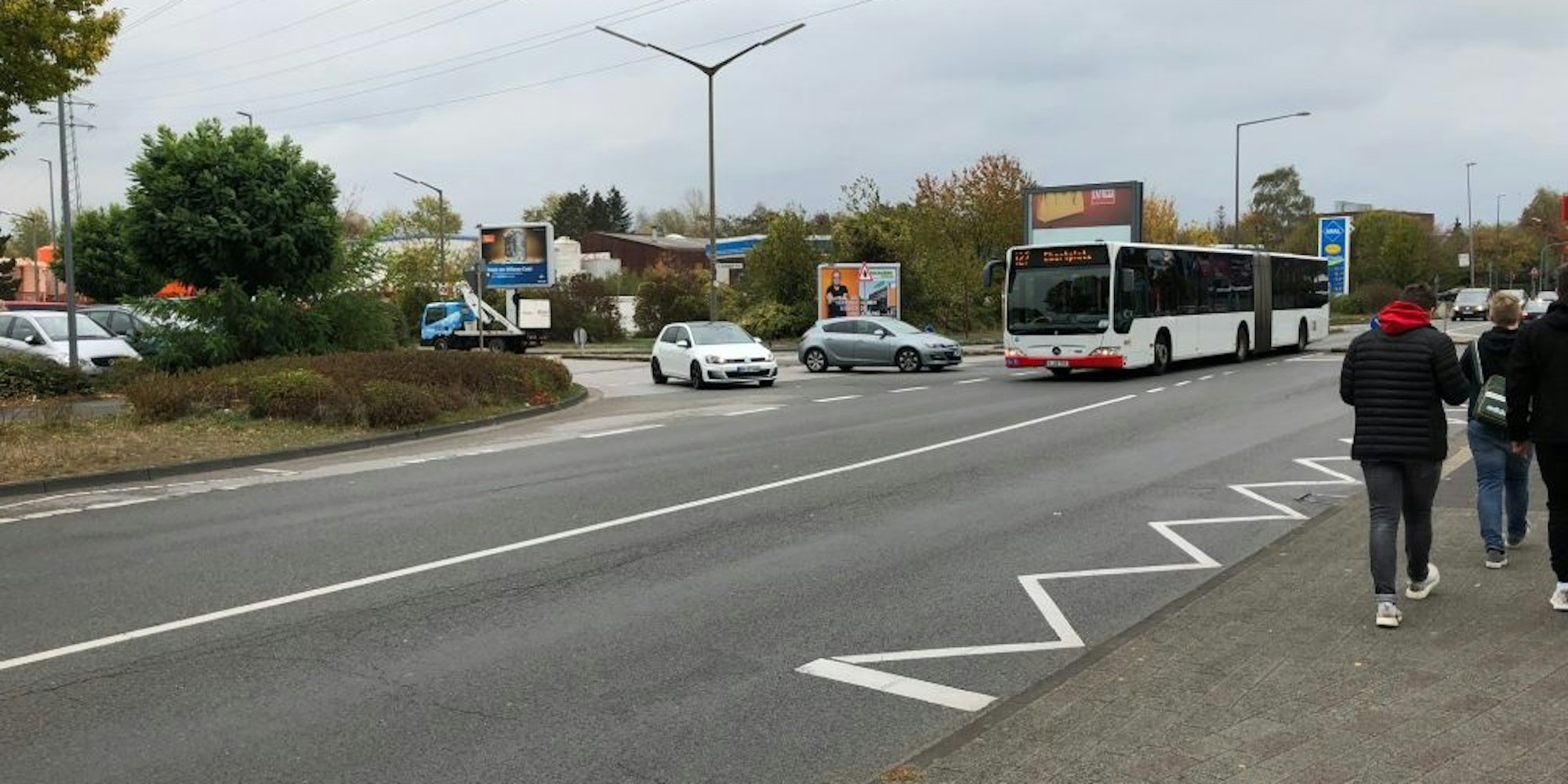 Eine Einbahnstraße könne am Gewerbegebiet Pesch ebenfalls nicht realisiert werden, sie sei unter anderem schwer zu erreichen, provoziere Umwege und könnte schnelleres Fahren verursachen, was wiederum Radfahrer und Fußgänger gefährde. Zudem werden umliegende Straßen durch den erhöhten Verkehr belastet. Die Prüfung eines möglichen Kreisverkehrs sei kurzfristig nicht möglich, da es einer neuen Verkehrszählung bedarf. Ein Zebrastreifen sei ebenfalls nicht möglich, da auf der Straße zu viele Autos fahren. Die Bezirksvertreter lenkten daraufhin ein und forderten die Stadt auf, die Ampel zu installieren.