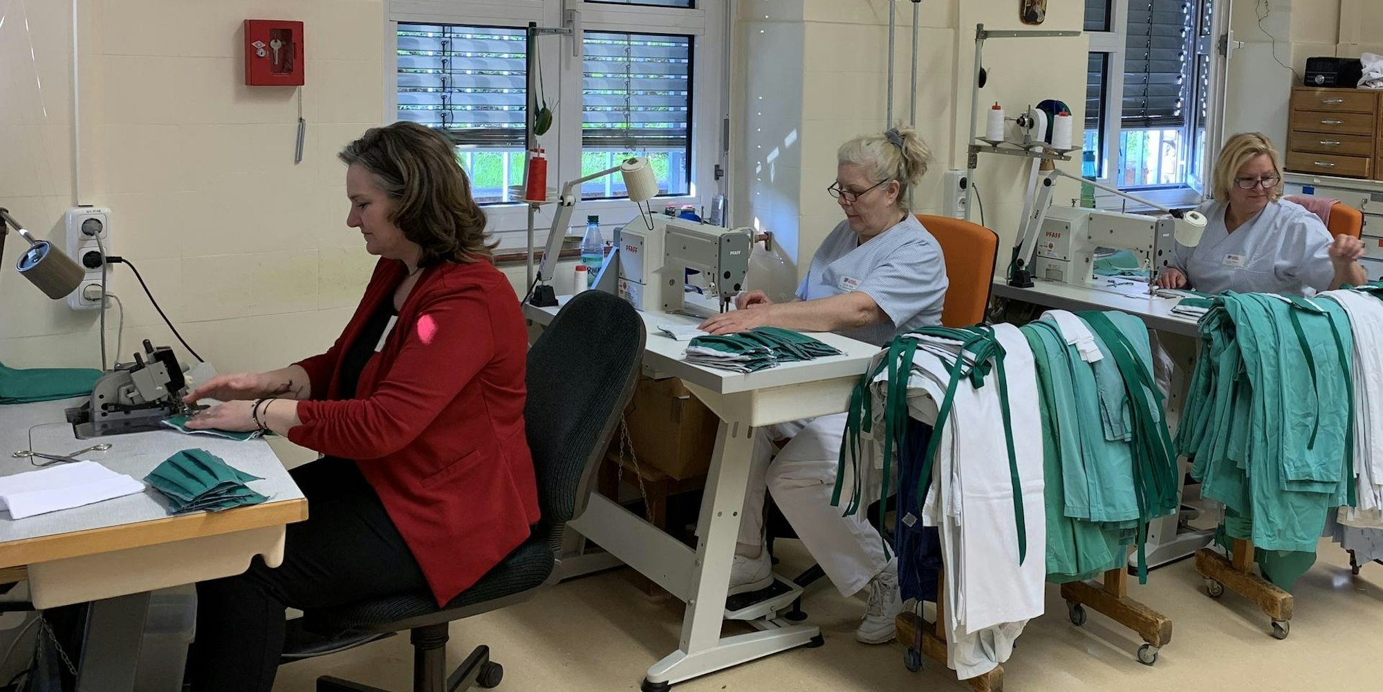 Seit einigen Tagen rattern die Nähmaschinen den ganzen Tag und drei Frauen nähen im Akkord: Sie stellen Mundschutzmasken her – um den Vorrat des Krankenhauses zu sichern.