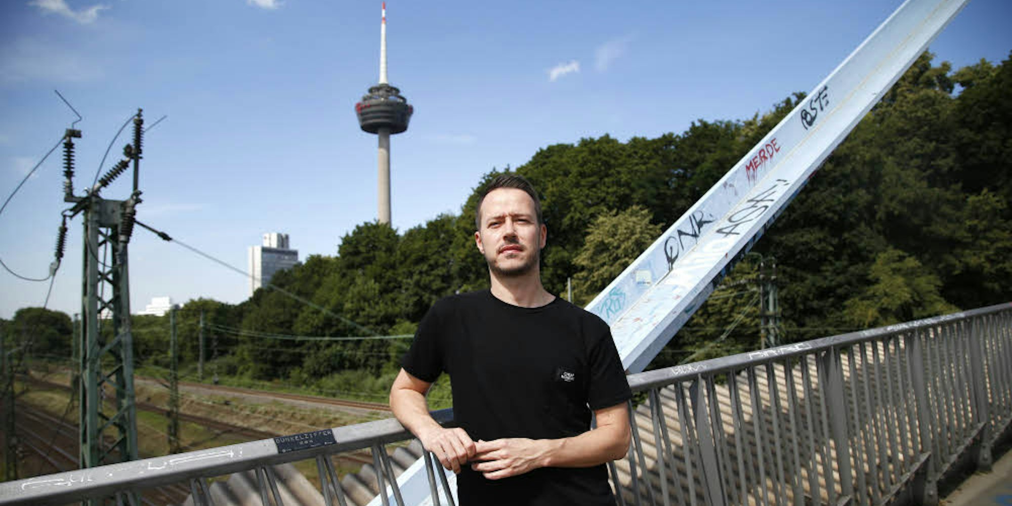 Köln – Daniel Faßbender überquert die Brücke zum Herkulesberg. Unter ihm die Bahngleise, nur wenige Meter entfernt. Jedenfalls im Vergleich zur Höhe des Fernsehturms Colonius. 266 Meter. „Höhe ist etwas Spannendes und Aufregendes. Man fühlt sich frei, erhaben und der Rest der Welt scheint plötzlich ganz klein“, sagt Faßbender. Ein tolles Gefühl. Doch was, wenn etwas schiefgeht? „Fallen ist Sterben“ schreibt er. Es ist der erste Satz seines Debütromans „Die weltbeste Geschichte vom Fallen“, der Ende Mai erschienen ist.