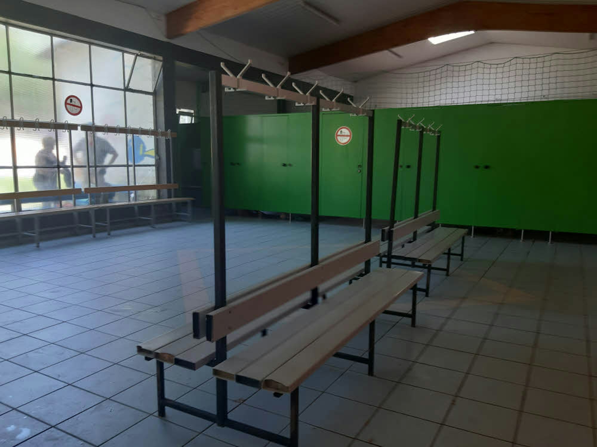 Der Umkleideraum erinnert an eine alte Turnhalle.