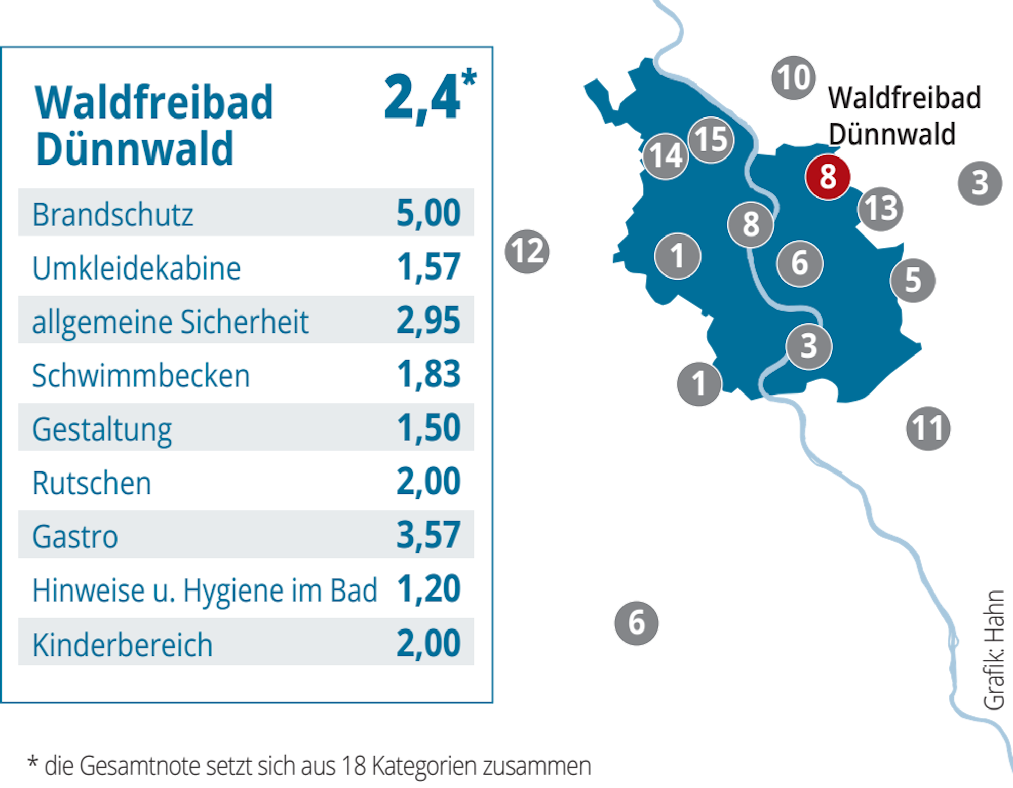 - In der Gesamtbewertung landet das Bad gemeinsam mit dem Lentpark auf Platz 8 von 15. Hier ist es zwar sehr sauber, beim Brandschutz hakt es allerdings.