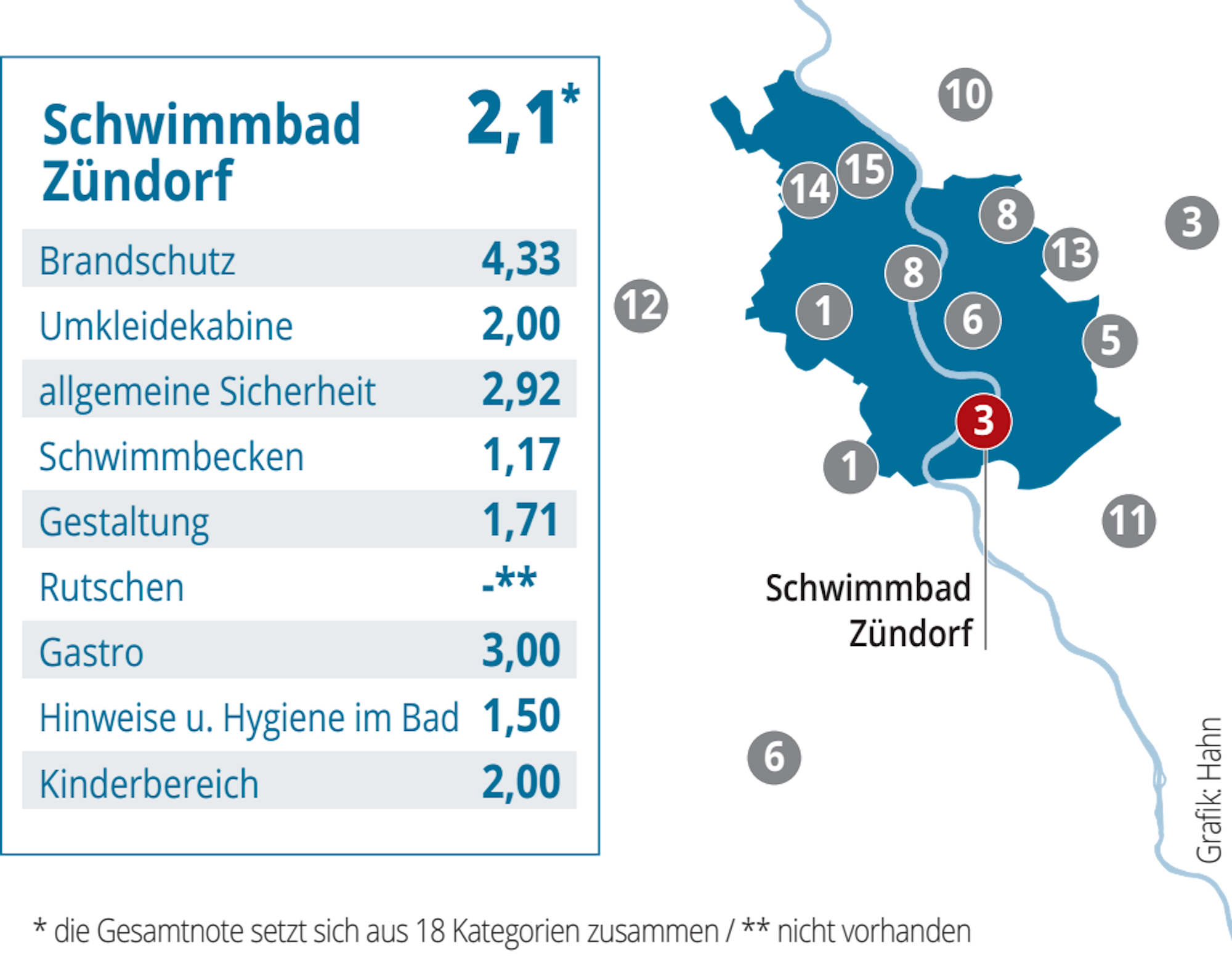 - Das Zündorfbad schneidet insgesamt gut ab und schafft es im Test auf Platz drei.