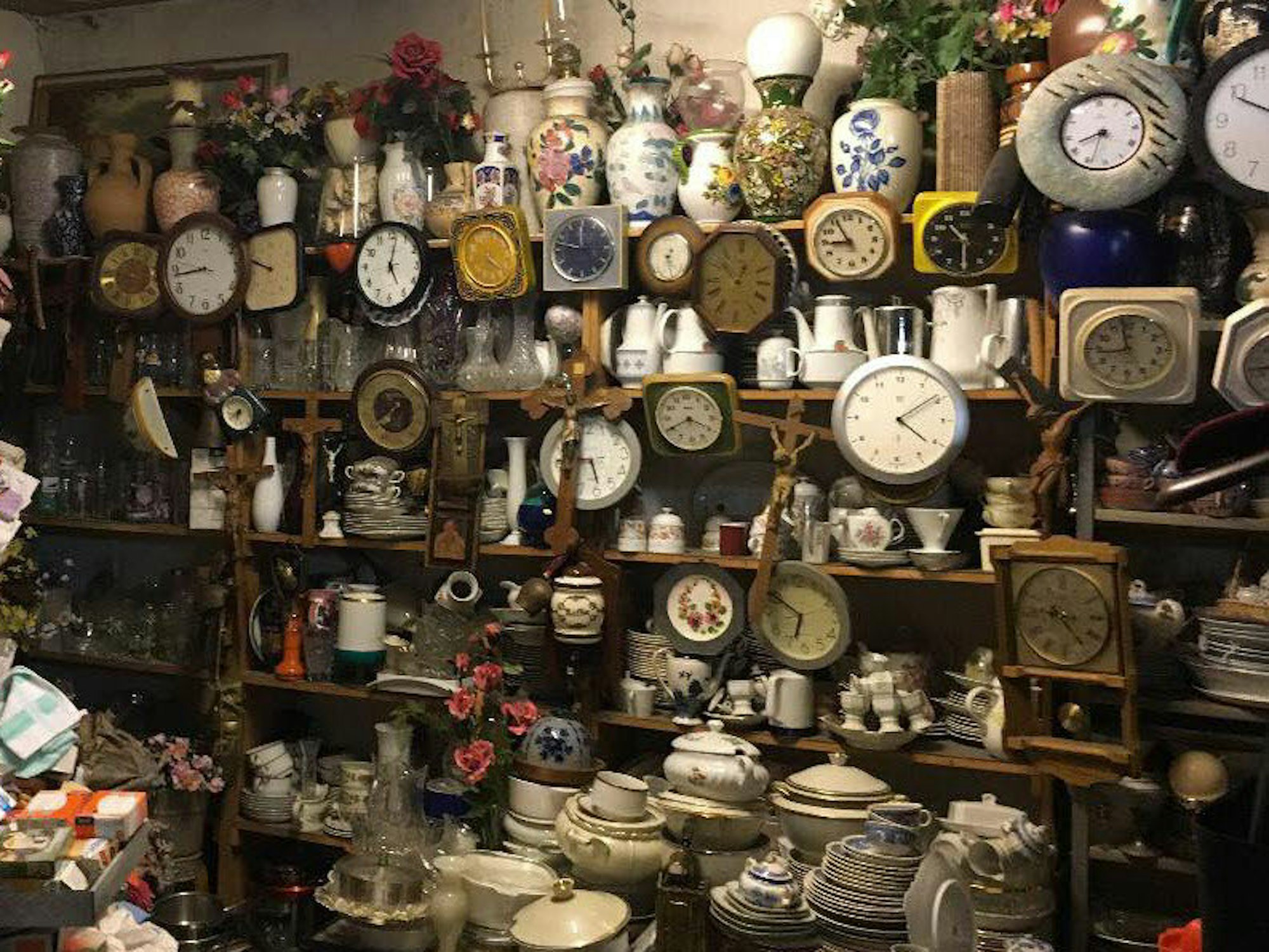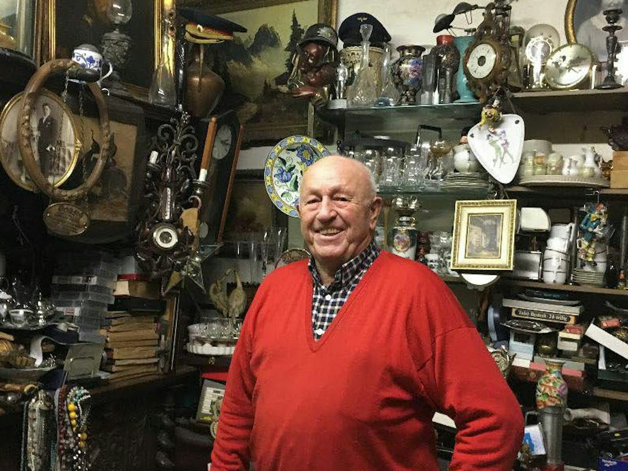 In den 60er und 70er Jahren war der Laden so eine Art Kaufhaus für arme Leute. „Meine Mutter hatte alle Preise im Kopf, musste nie eine Bestandsaufnahme machen, sie wusste immer, was sie hat und wo es steht. Es waren damals goldene Zeiten, wir mussten oftmals die Tür zu machen, weil die Leute Schlange standen,“ erinnert sich Annelie. Die 76-Jährige hat sich inzwischen aus dem Tagesgeschäft zurückgezogen. Ihr Mann kann es aber nicht lassen, jeden Tag öffnet er den Laden. „Mit Trödel bin ich sehr reich geworden, aber die goldenen Zeiten sind jetzt vorbei. An manchen Tagen kommt keiner, manchmal gerade mal fünf Kunden. Das ist mir inzwischen scheißegal, ich bin der letzte Mohikaner. Unsere Söhne haben kein Interesse an dem Laden und wenn ich tot bin, dann fahren die hier einen Bagger rein“, sagt Groth mit einem lachenden und einem weinenden Auge. Aber seinen Laden öffnet er weiterhin jeden Tag für zwei Stunden. Und damit er den Feierabend nicht verpasst, stellt er sich immer vorsichtshalber den Wecker. Auswahl hat er ja genug. Rosa Küderling Antiquitäten seit 1886, Kettengasse 7, 50672 Köln Geöffnet Mo-Fr 15 – 17 Uhr