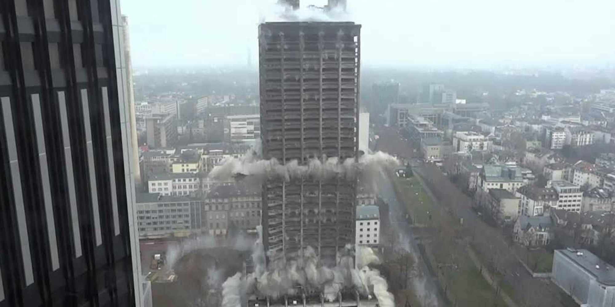 Köln – 2014 wird der AfE-Turm in Frankfurt gesprengt. Mit 116 Meter ist der Universitätsturm bis dahin das höchste Gebäude in Europa, da je dem Erdboden gleich gemacht wurde. Die Sprengung verläuft reibungslos.