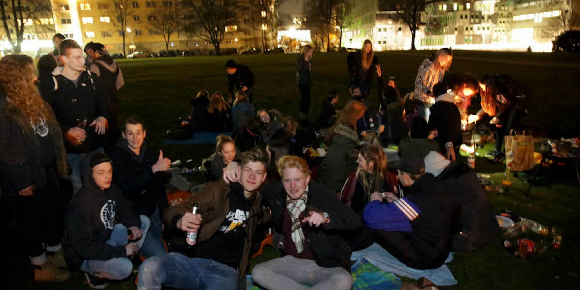 Abiturienten dreier Gymnasien feiern gemeinsam und friedlich auf der Uniwiese.