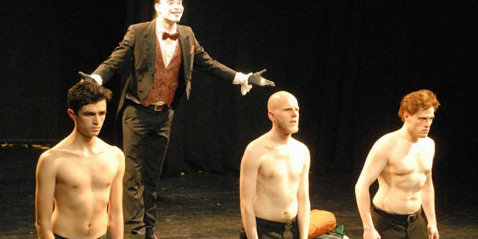 Der makabre Schlusschor gipfelte in einer Art Racheakt am teuflischen Dompteur. Die fortwährend Gedemütigten stülpten ihm eine Gummimaske übers Gesicht und stellten damit den Bezug zur Auftaktszene her, in der ein Tänzer mit eben dieser Maske das Publikum auf die schrille Revue eingestimmt hatte.