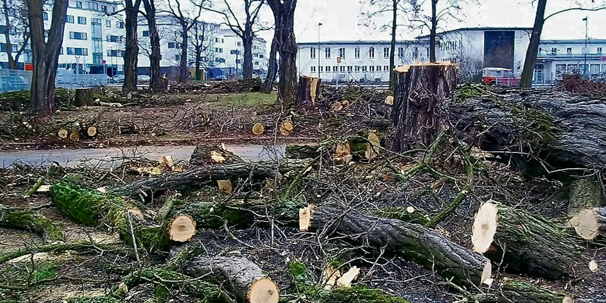 Ein Anblick, der viele Anwohner betroffen macht: Gefällte Bäume am Butzweilerhof.