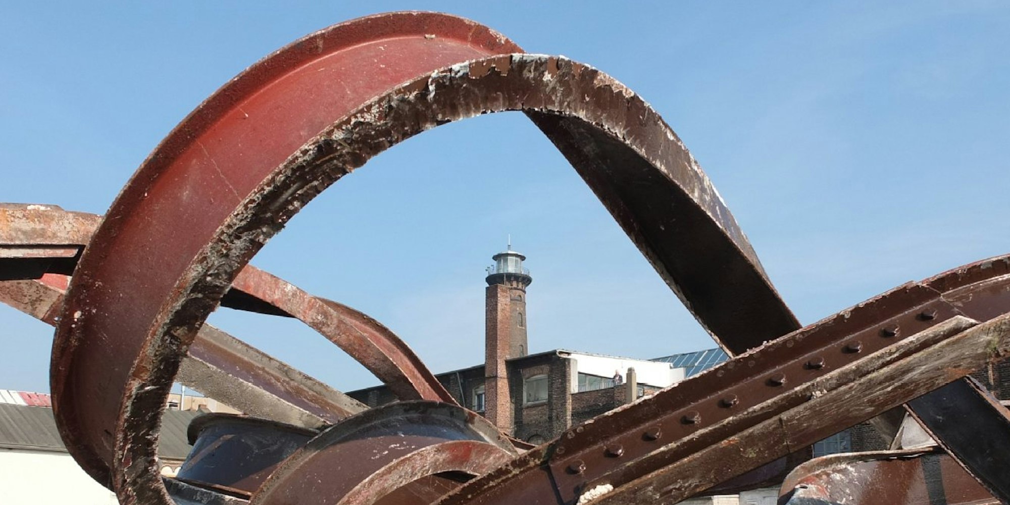 Verbogene Stahlträger und jede Menge Schutt liegen auf dem Heliosgelände. Der Leuchtturm wird aber nicht abgerissen.