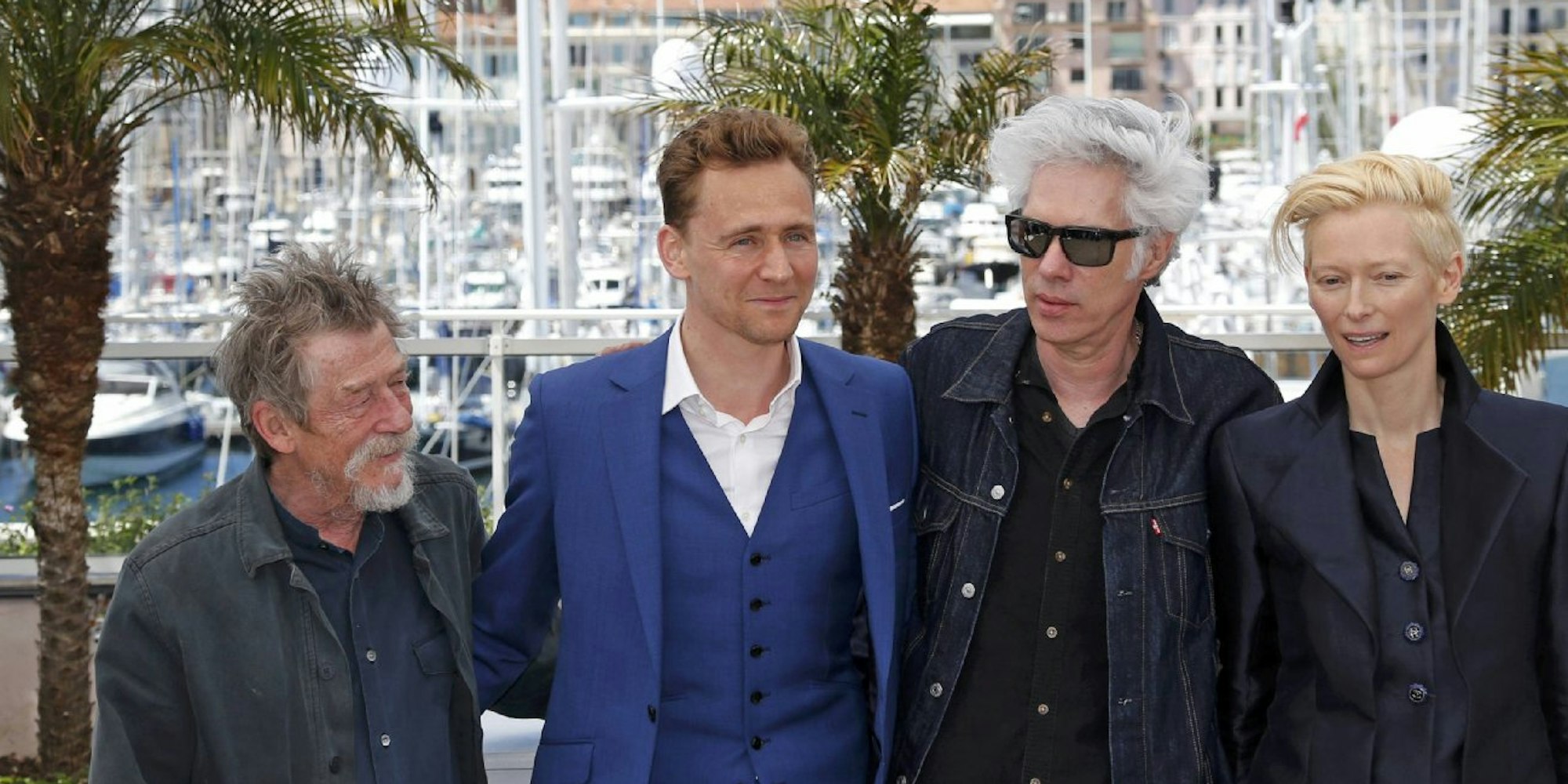 Regisseur Jim Jarmusch (2. v. r.) mit den Schauspielern John Hurt, Tom Hiddleston und Tilda Swinton. Zusammen spielten sie in "Only Lovers Left Alive".