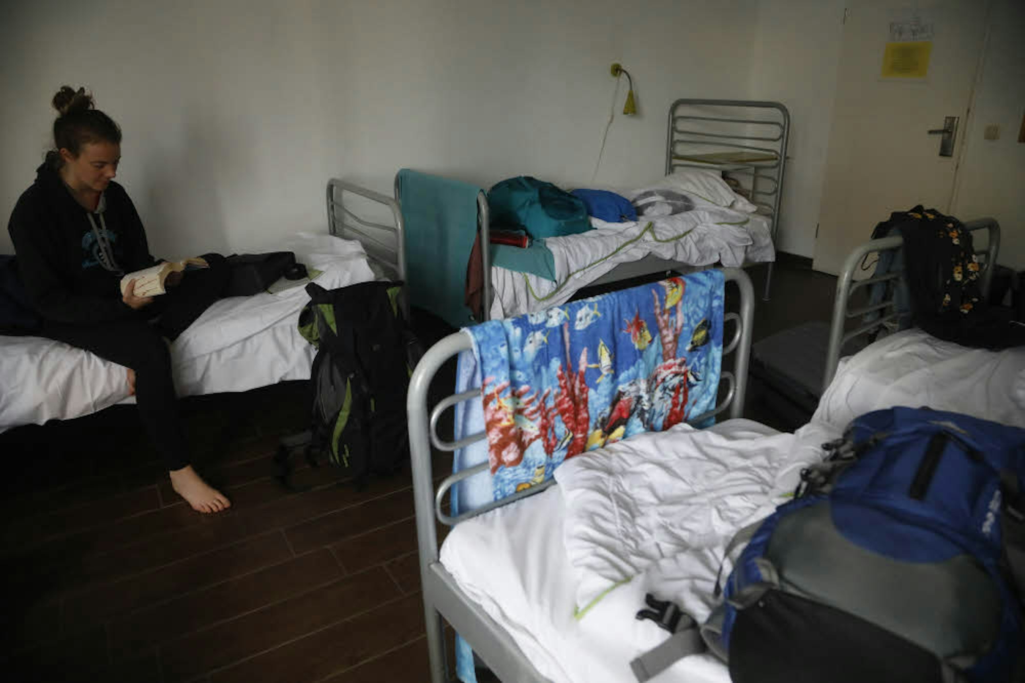 Zimmer 211, Bett Nummer 5 wird mir zugeteilt. Die Zahl der Rucksäcke sei leider in den letzten Jahren zurückgegangen, immer mehr Backpacker reisen mit Rollkoffer, dämpft Besitzer Ralf Kuhlmann meine Nostalgie-Stimmung. Aber mein Zimmer ist ein Glücksgriff: Auf den Betten liegen fünf Rucksäcke und nur ein Koffer.