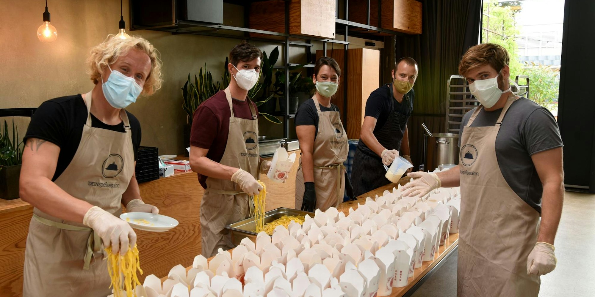 Sie haben dieses Engagement begonnen, als es ihnen selber nicht so blendend ging. „Als unsere Geschäfte zu Beginn der Corona-Krise wie bei etlichen anderen in unserer Branche von 100 auf Null sausten, waren wir zunächst fassungslos. Aber dann hatten wir den Wunsch, die Ärmel hochzukrempeln und etwas zu unternehmen“, sagt Zimmermann. Mittlerweile haben sie das Projekt „fairshare“ gegründet. Und wer dieses ähnlich wie die Musiker von Kasalla unterstützen möchte, muss sich nicht selber in die Küche stellen. Man kann sich auch mit Spenden an den Produktionskosten beteiligen.