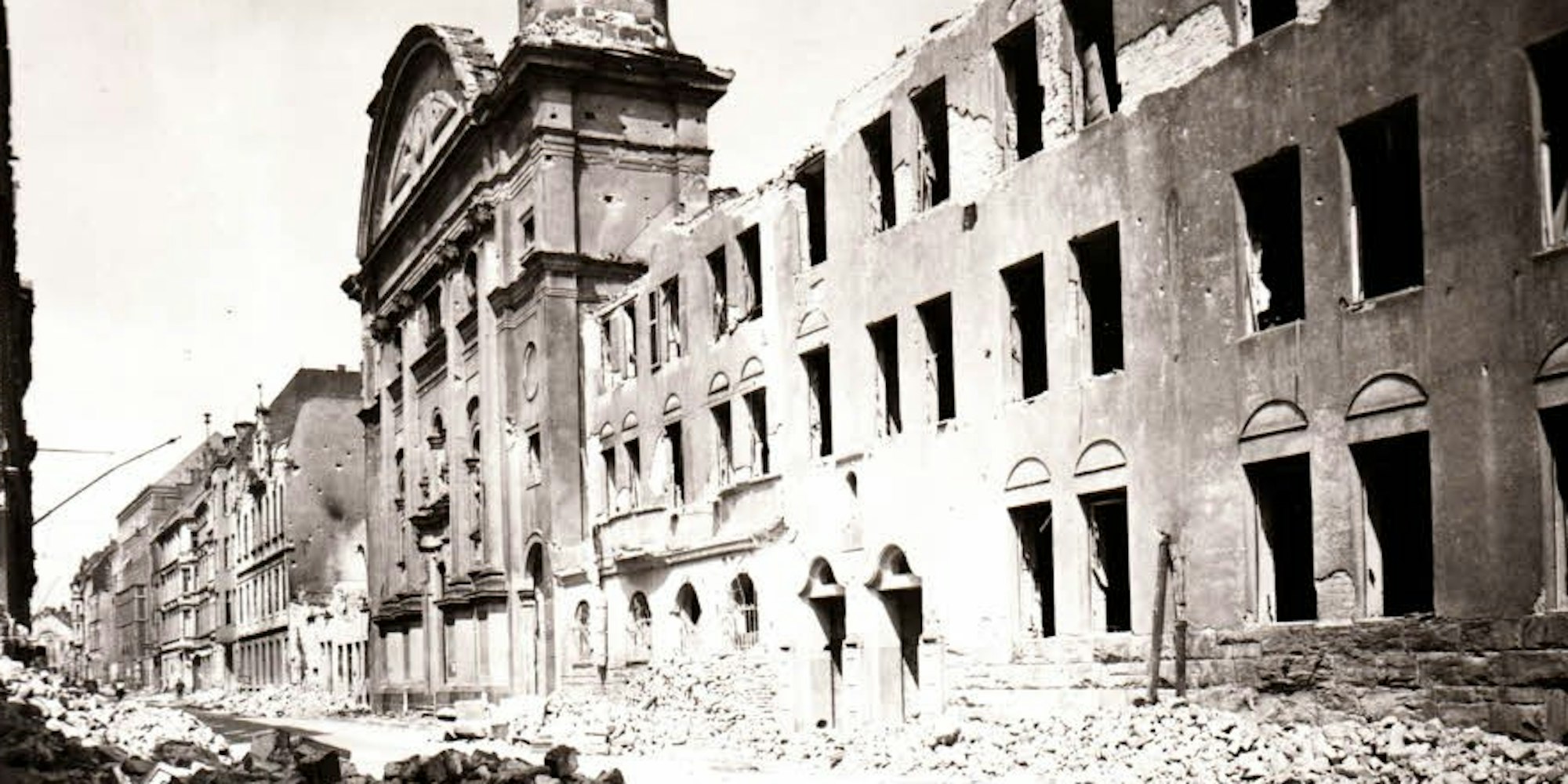 Ursulinenkirche und -kloster in der Machabäerstraße wurden im Zweiten Weltkriegs stark beschädigt.