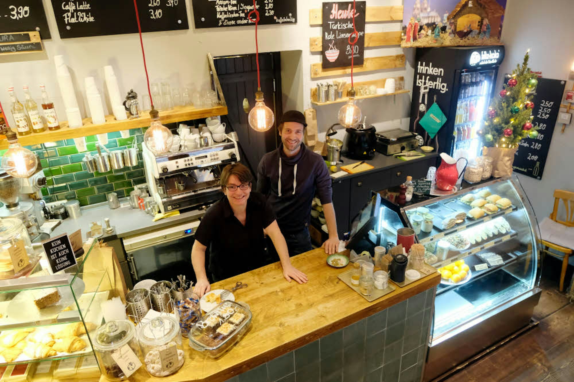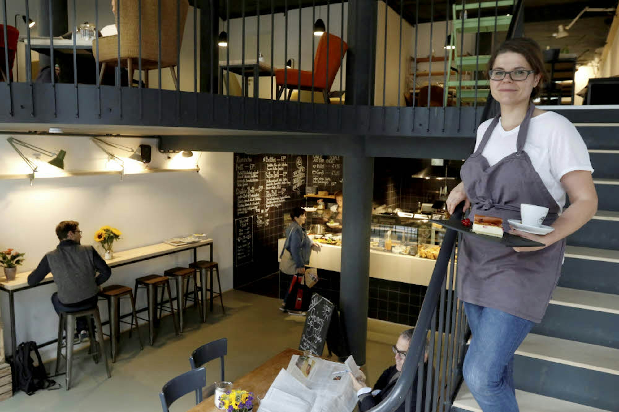 Ich glaube, wir sind der gemischteste Laden in ganz Köln. Wir haben die Mütter, die mit ihren Kindern den Vormittag bei uns verbringen, die ganz frühen, die sich auf dem Weg zum Bahnhof ihren Kaffee holen, die Hipster, die hier an ihren Laptops neue Start-ups hochziehen oder die Leute aus den Büros um die Ecke, die sich hier am Mittag ihren Schuss Espresso holen. Am Samstag trifft man viele Touristen an, sonntags sind wir der klassische Kaffee-und-Kuchen-Betrieb.