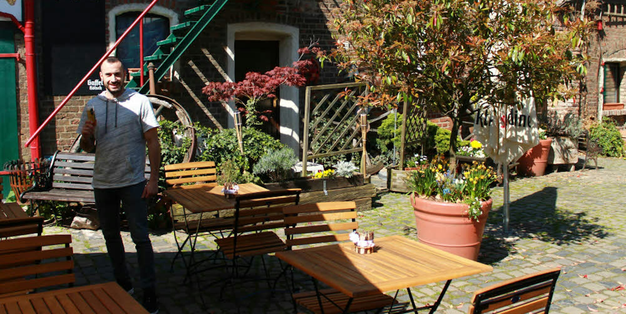 Das alte Gebäude mit dem urigen Innenhof, die Ruhe hier im Biergarten. Das ist schon etwas Besonderes, vor allem für eine Großstadt wie Köln. Ich denke, die Gäste lieben einfach dieses Ambiente.