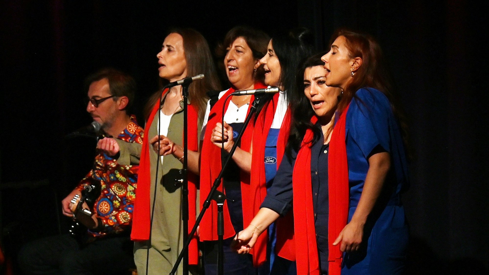 Ganz stark ist die Idee, fünf Sängerinnen aus Hazars Wahlheimat Königswinter – alle sind als Kinder von „Gastarbeitern“ dortgeblieben – wie ein Chor eines antiken griechischen Dramas mit den Profischauspielern zusammenzubringen.