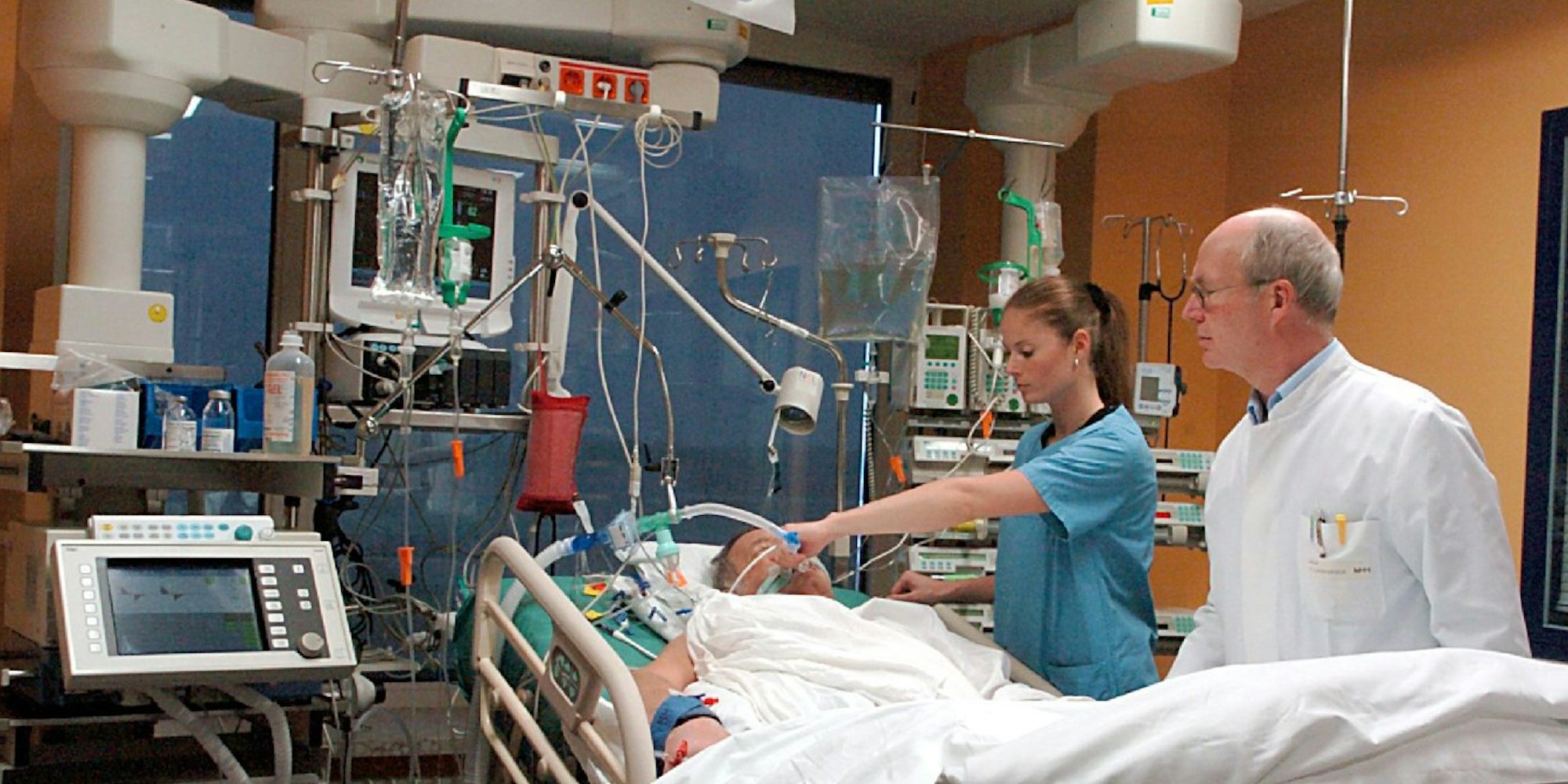 Beatmung eines Koma-Patienten in einer Intensivstation.