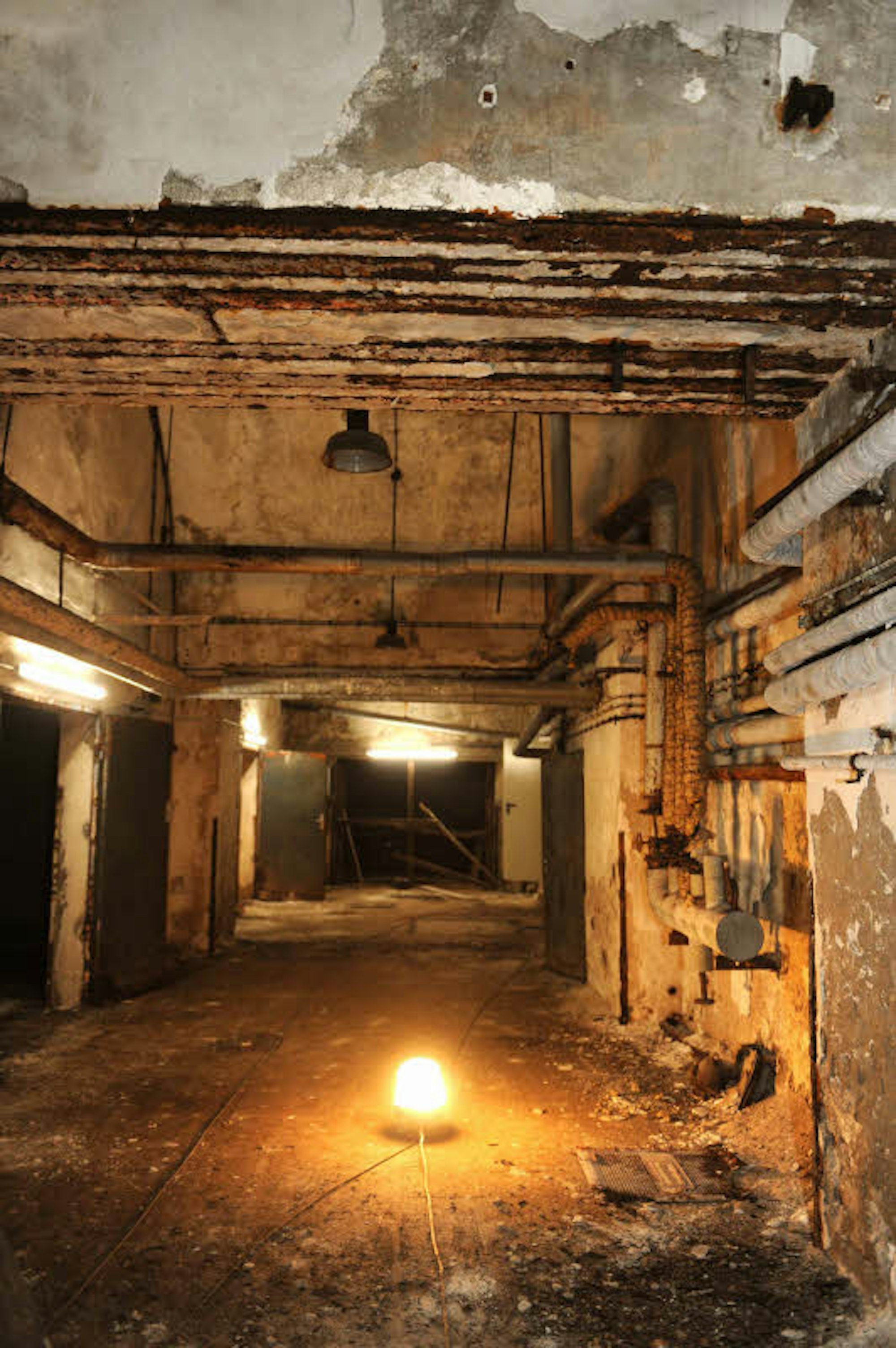 - Unter der Erde hängen verrostete Rohre hängen an Wänden, deren Putz schon mal besser in Schuss war.