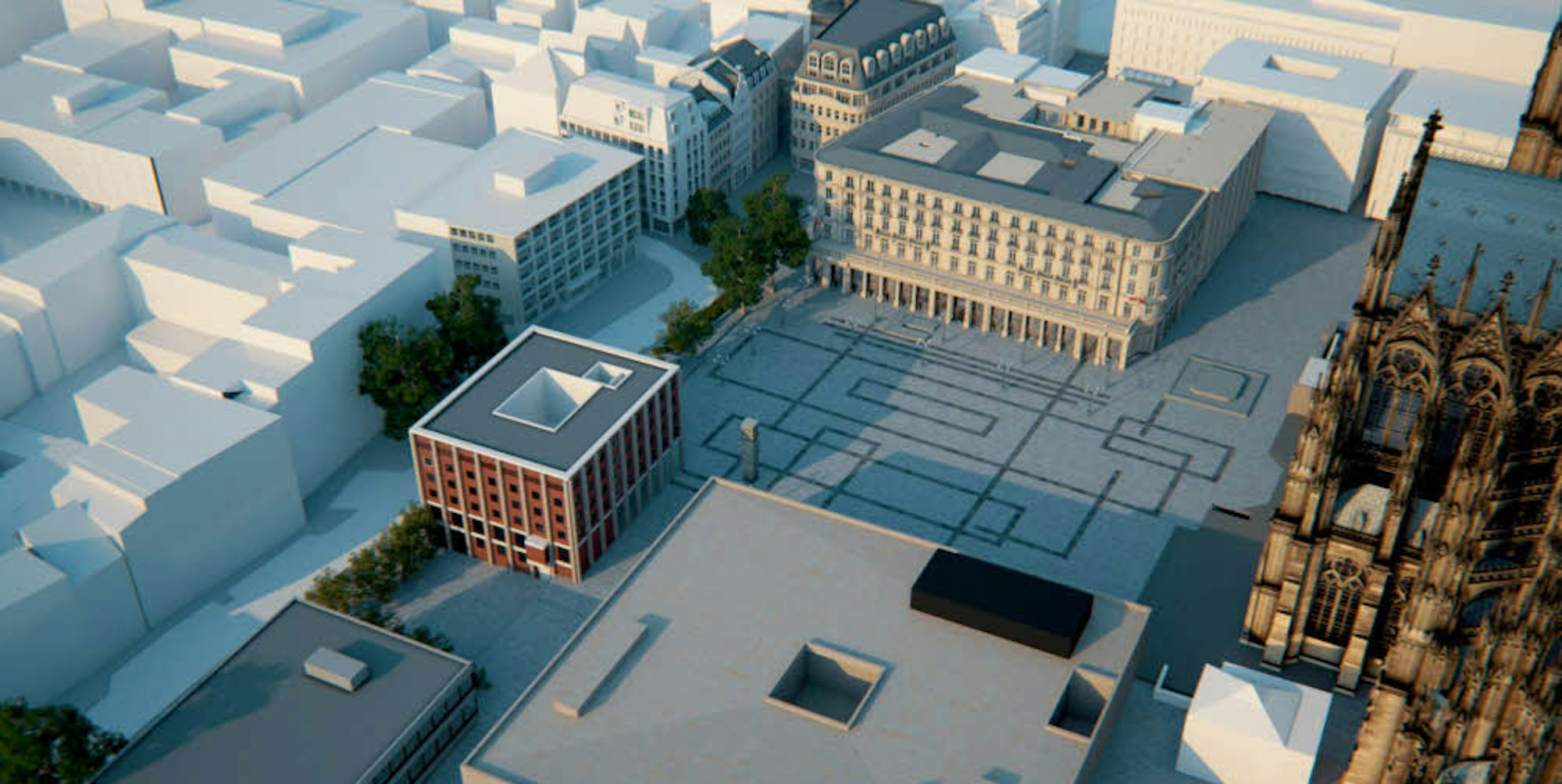 Als digitales 3D-Modell: Der Roncalliplatz im Jahr 1893.