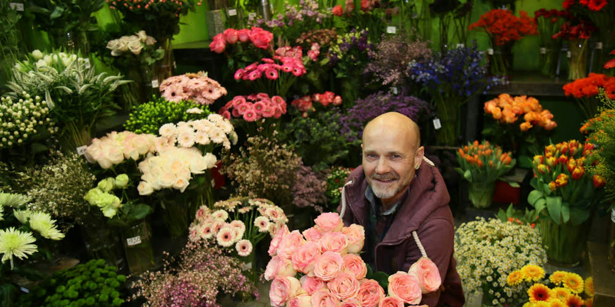 Das beobachtet auch Roland Schimmel-Pfennig. Der Floristmeister betreibt den efeuumrankten Traditionsbetrieb „Blumengarten“ an der Venloer Straße nahe am Friesenplatz. „Früher war auf dem Großmarkt richtig was los.“ Wenn der morgens öffnete, gab es einen richtigen Run auf die schönsten Blumen. Das war eine tolle Atmosphäre, viele Gärtner waren dort“, erinnert er sich. „Heute herrscht dort Grabesstille. Die Hälfte der Gärtner ist verschwunden.“ Raimund Korbmacher, Geschäftsführer des Blumengroßmarkts Köln, hält dagegen. Zwar sei die Zahl der Blumenläden zurückgegangen, „aber die Umsätze steigen“, sagt er. Der Branche gehe es nicht schlecht. Das Sterben der Läden habe eine andere Ursache: Es fehle vor allem der Nachwuchs.