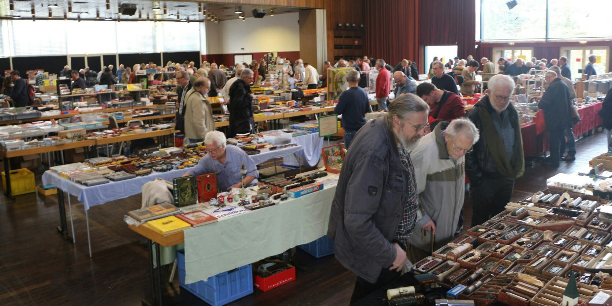 Der Adler-Modellspielzeug-Markt fand in diesem Jahr zum siebten Mal in der Stadthalle in Mülheim statt und brachte wieder 70 Modellbahn-Händler mit rund 500 Eisenbahn-Enthusiasten zusammen, wie Veranstalter Jürgen Hörner schätzte. "Der Großteil unserer Besucher ist männlich und mittleren bis hohen Alters. Unsere jüngeren Kunden sind so um die 40 Jahre alt."