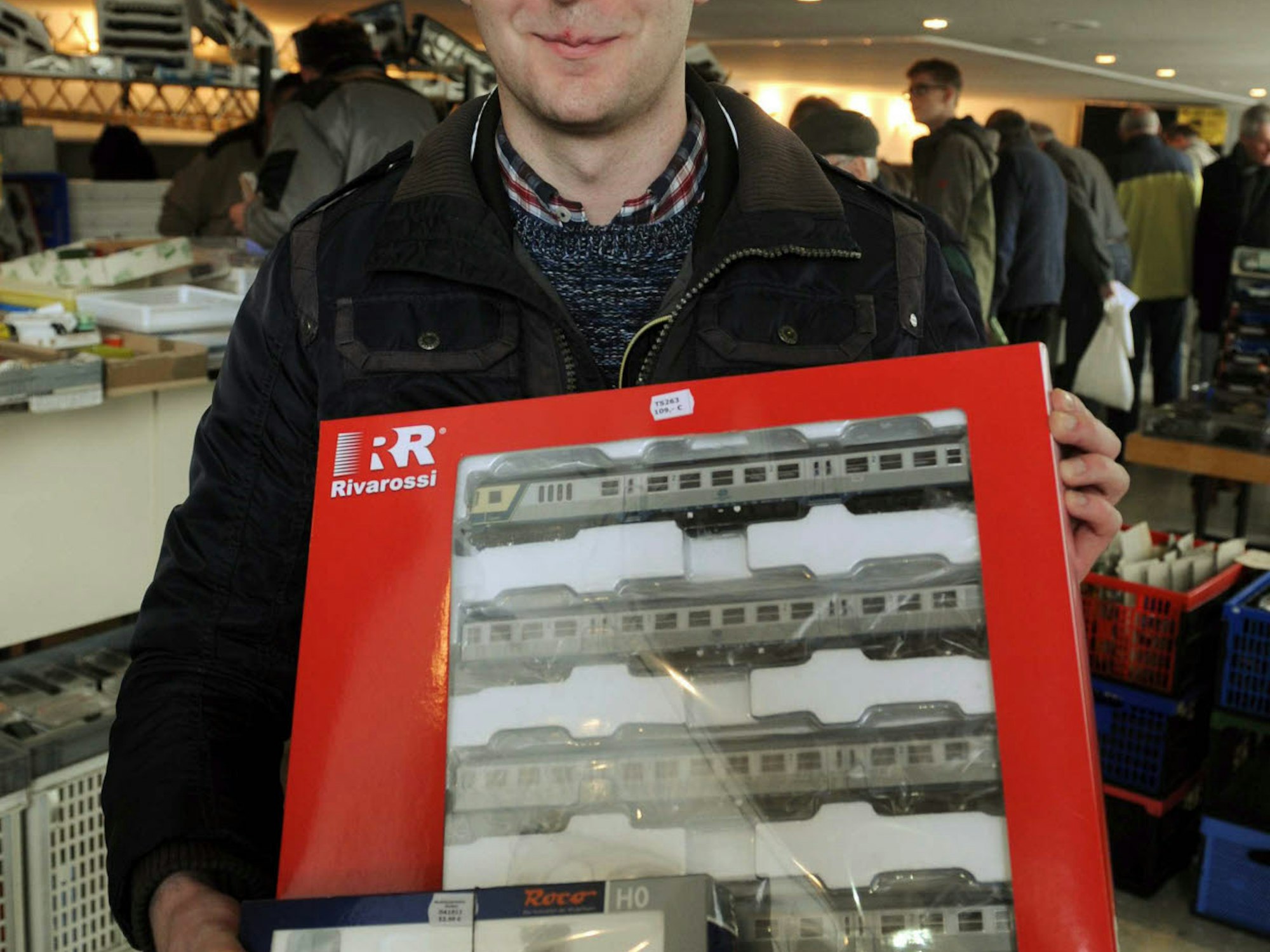 "Es ist die Mechanik, die begeistert", weiß Hörner, der selbst mit der Modellbahn aufgewachsen ist. Seine silberne Krawattennadel in Lokomotivform glänzt wie neu. Viermal im Jahr ist er mit dem "Adler-Spielzeugmarkt" in Mülheim, immer auch am Neujahrstag. 400 bis 500 Sammler und Jäger von Modellbahnen und -autos, Blechspielzeug, Puppen und Plüschtieren sind in Köln im Durchschnitt mit dabei. Bei rund 60 Ausstellern stöbern sie nach Schnäppchen und Raritäten. Feilschen, Tauschen und Handeln ist erlaubt. Am Ostermontag dominiert das Angebot an Modellbahnen. "Eine große Anzahl kauft nur für die Vitrine. Klassische »Stehrümchen«", weiß Hörner. Nicht so bei Familie Wilke. Bei Vater Stefan Wilkes Hobby basteln auch seine Frau und die kleinen Töchter mit. "Mein Vater hat mich an die Eisenbahn herangeführt und so mache ich es bei meinen Töchtern. Sie lernen spielerisch etwas über die Bewegung und die Technik, die mich auch selbst begeistert", sagt Wilke. Auf dem Markt hat er eine "Köf" erstanden. "Die Rangierlok habe ich gestern noch am Umschlagbahnhof Köln Eifeltor gesehen", sagt Wilke. Nicht nur zu Hause auf dem Dachboden ist er Lokführer, sondern auch im echten Leben Triebfahrzeugführer. Kinder sind auf dem Markt willkommen, aber junge Leute sind eher die Ausnahme. "Ich bin mal gespannt, ob der neue Jim-Knopf-Film die Modellbahn bei Kindern wieder beliebter macht", sagt Hörner. Dabei könnten die neuen Digitalbahnen mit Dampf und Geräuschen schon ziemlich viel. Allerdings bauten diejenigen, die analoge Anlagen hätten, diese selten auf digital um, weiß Hörner. "Die eingefleischten Analogfahrer setzen sich damit nicht auseinander", sagt er. Das älteste Modell auf dem Markt hat ein belgischer Verkäufer mitgebracht. Die gut erhaltene HR 700 von Märklin, Spurweite H0, ist von 1937. Für 1600 Euro bietet er sie zum Verkauf. "Man muss bedenken, dass die Lok tatsächlich ein Spielzeug war. Dafür ist sie in einem sehr guten Zustand", sagt der Verkäufer. Heute ist sie ein Sammlerstück.