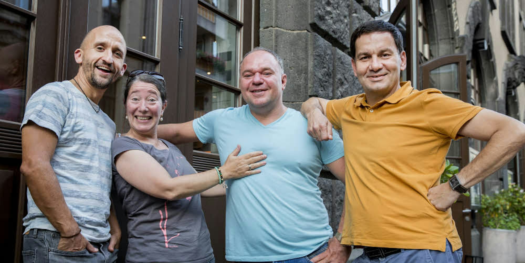 Hülya Dogan-Netenjakob (51) ist Schauspielerin und Regisseurin, ihr Mann Moritz Netenjakob (48) Autor und Kabarettist. Serhat Dogan (44) ist Schauspieler und Komiker, Markus Barth (41) ebenfalls Autor und Kabarettist. Alle vier leben in Köln.