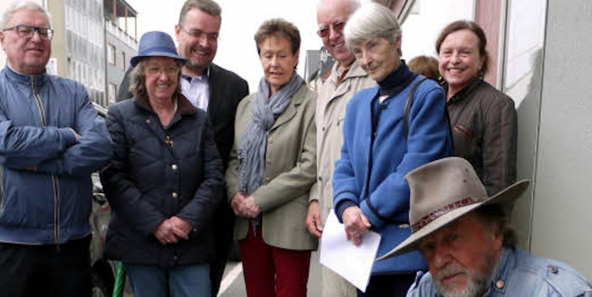 Einige interessierte Bürger waren gekommen, darunter auch die Vertreter der Vereine und Organisationen, die die Patenschaft und Kosten für die Stolpersteine übernommen hatten. Die Autorin Berschel und ihr Historiker-Kollege Fritz Bilz gaben noch tiefergehende Einblicke in die Geschichte.